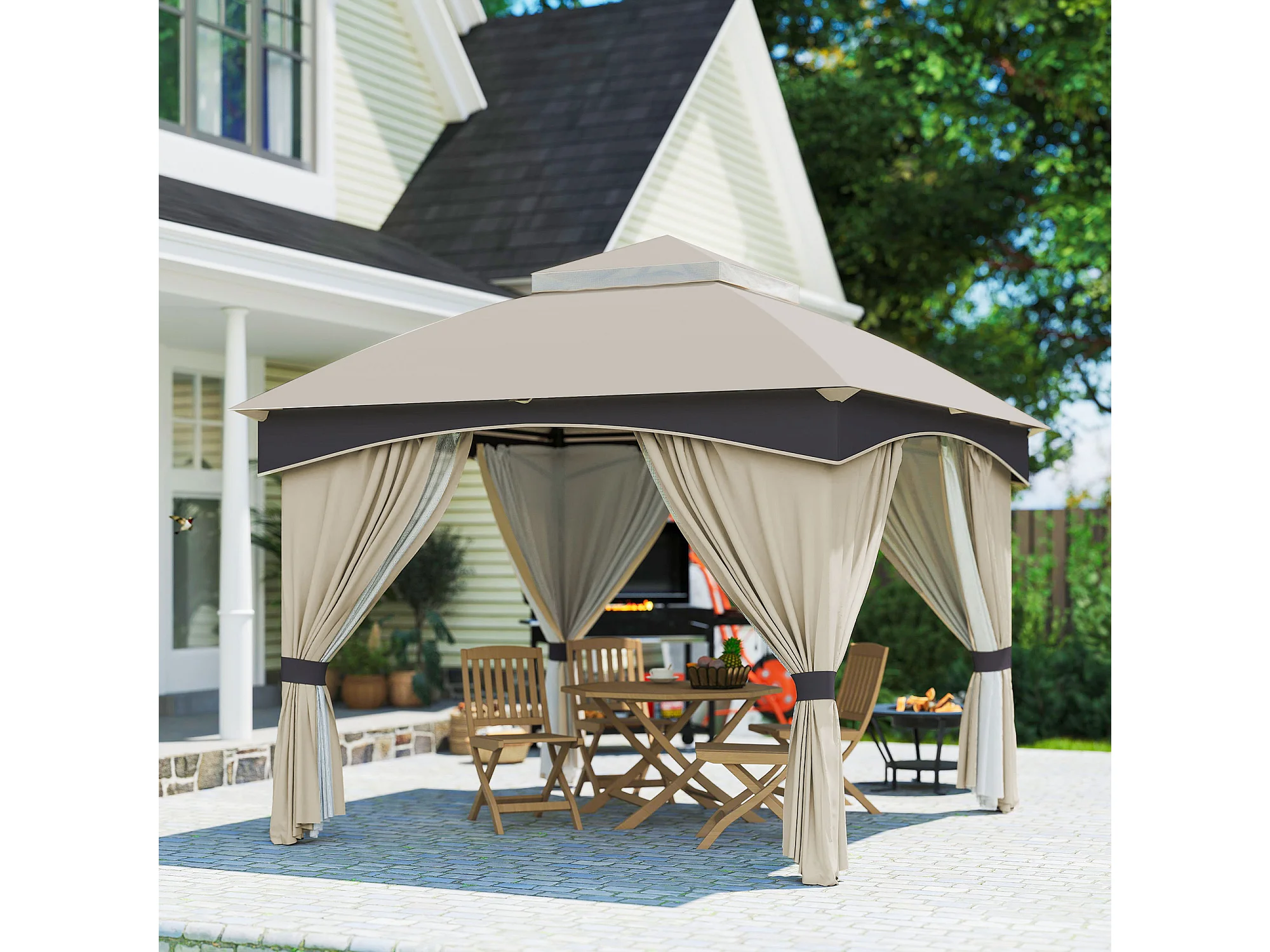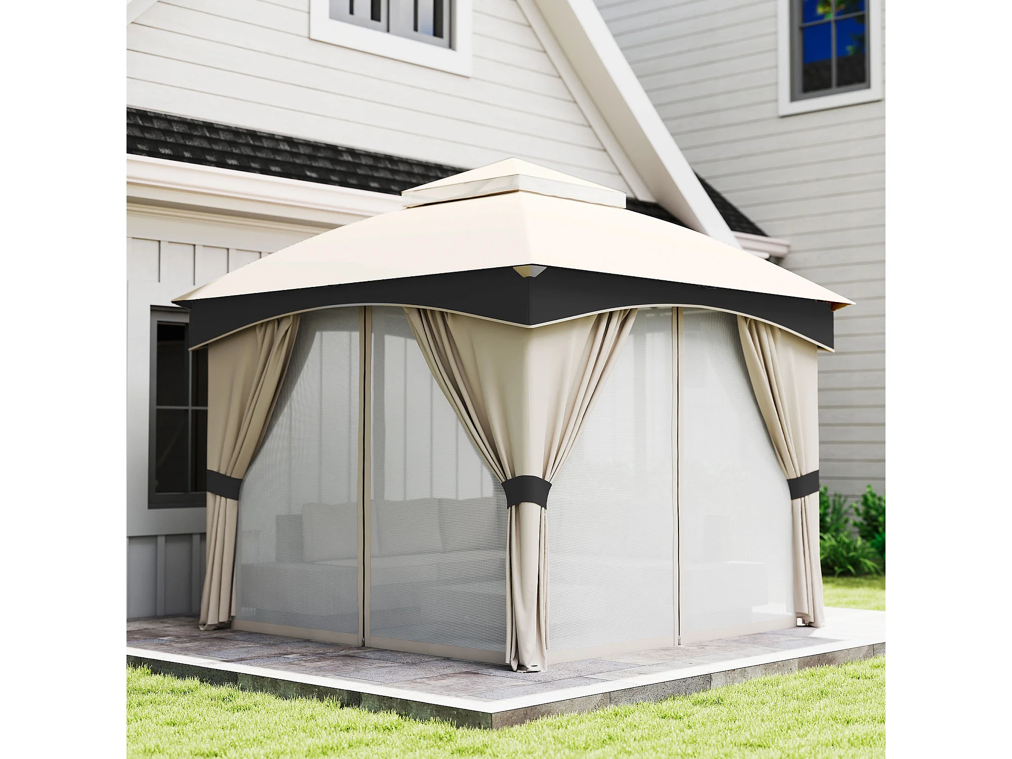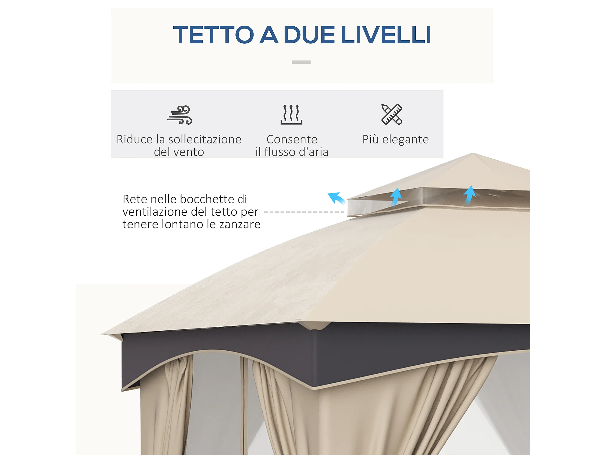 Gazebo 3x3m in acciaio a doppio tettuccio con tende e reti