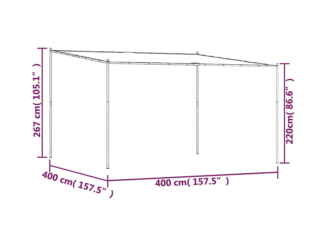 Gazebo con Tende 4x3 cm Bianco Crema Alluminio