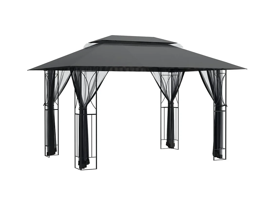 Gazebo con Schermi a Rete 3x4 cm Antracite in Acciaio