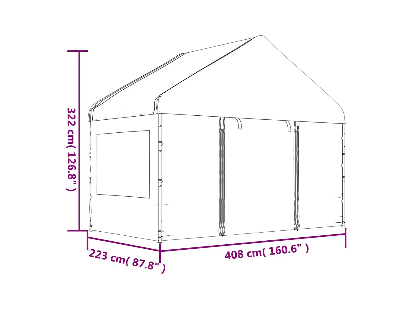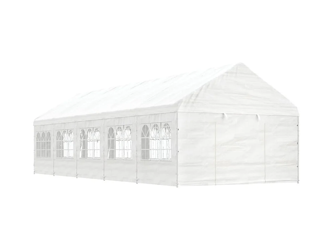 Gazebo con Tetto Bianco 13,38x4,08x3,22 m in Polietilene