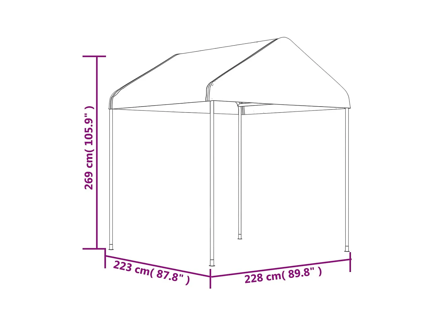Gazebo con Tetto Bianco 4,46x2,28x2,69 m in Polietilene
