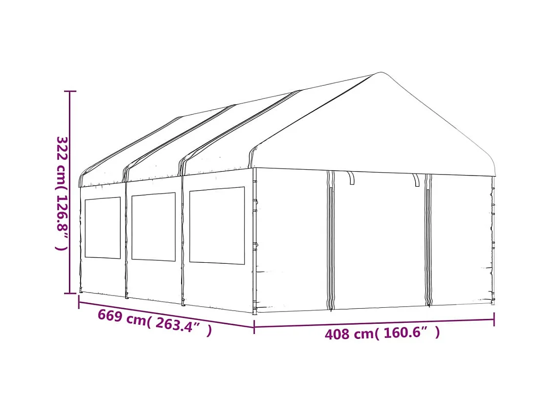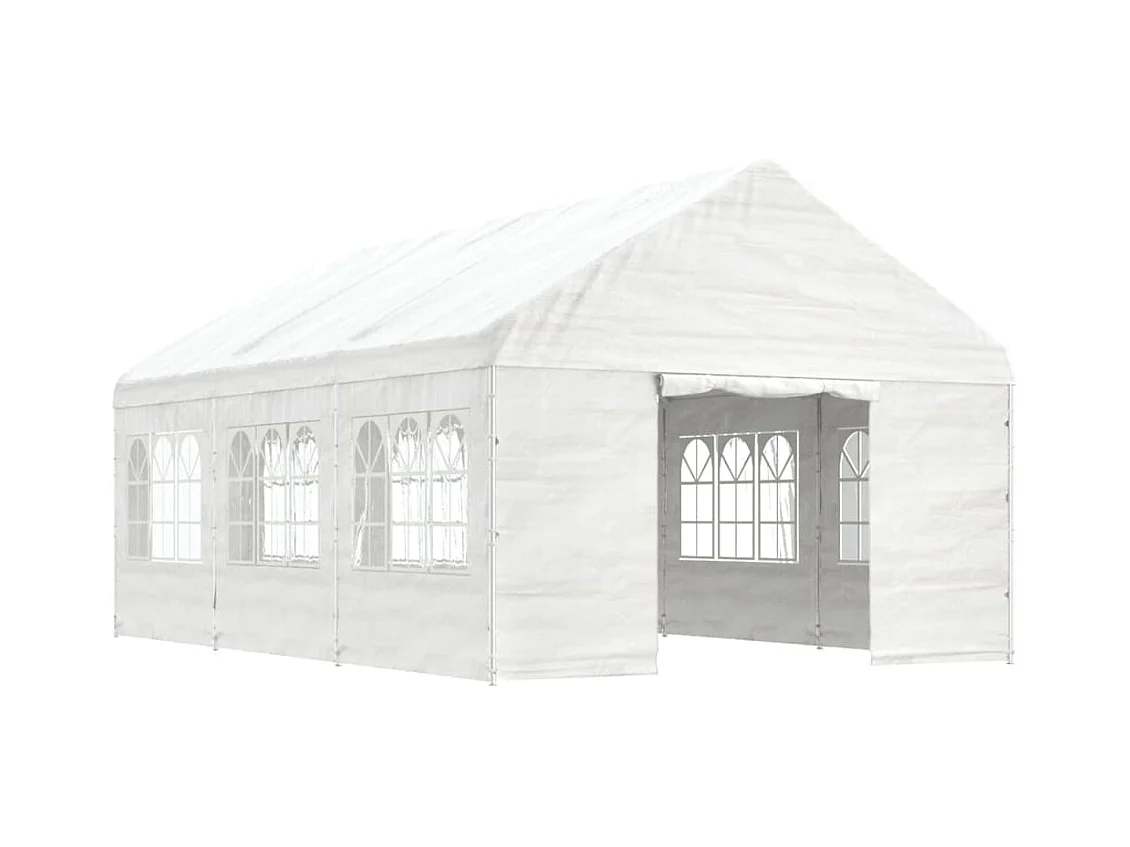 Gazebo con Tetto Bianco 13,38x4,08x3,22 m in Polietilene