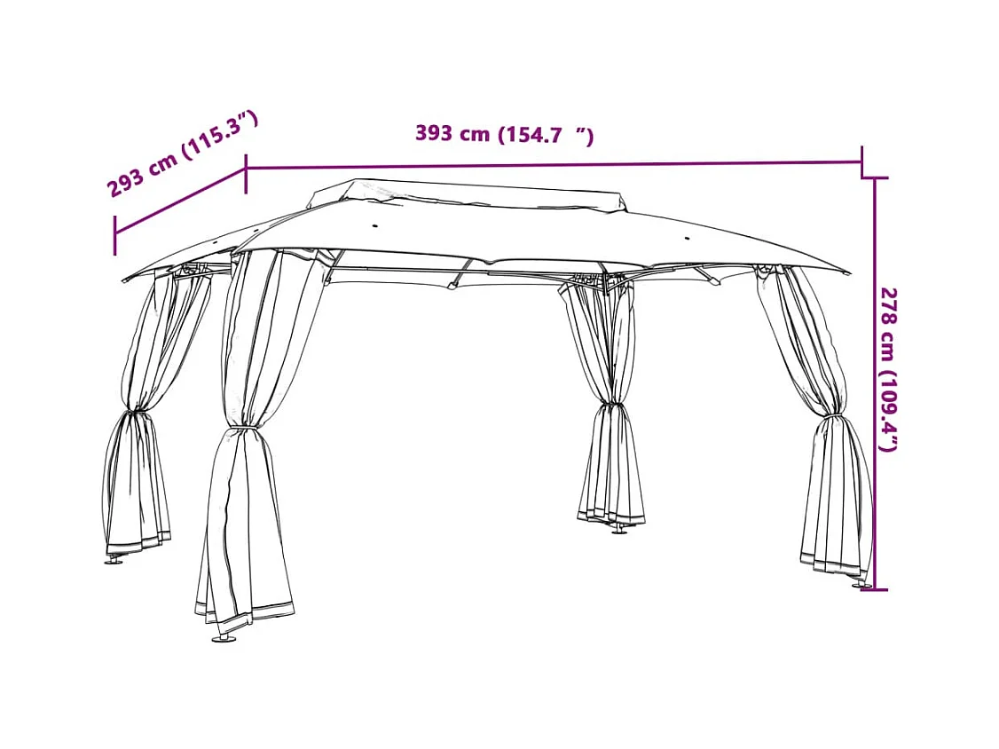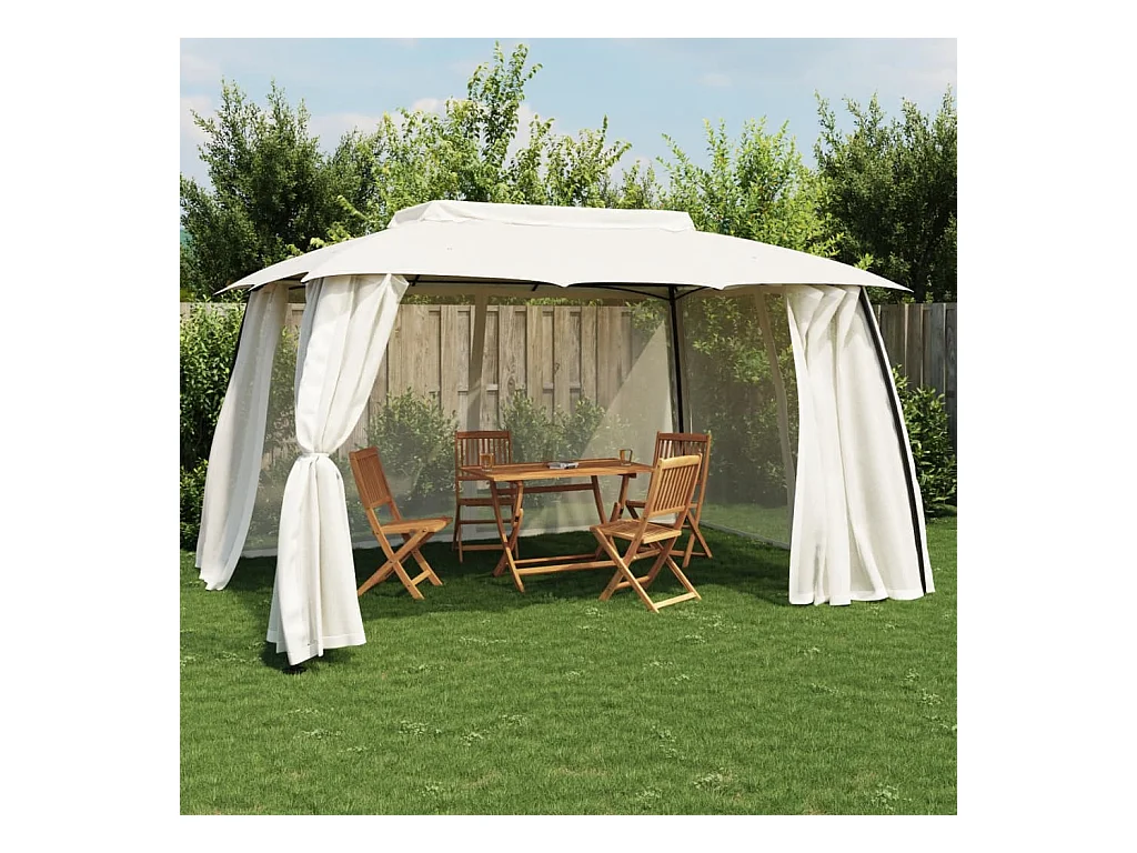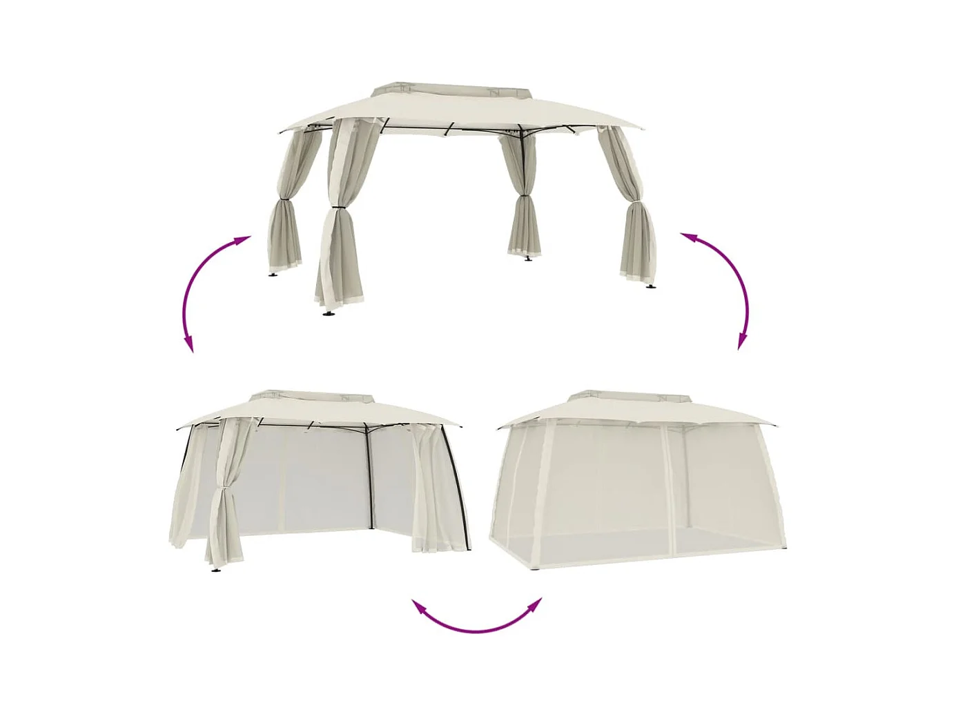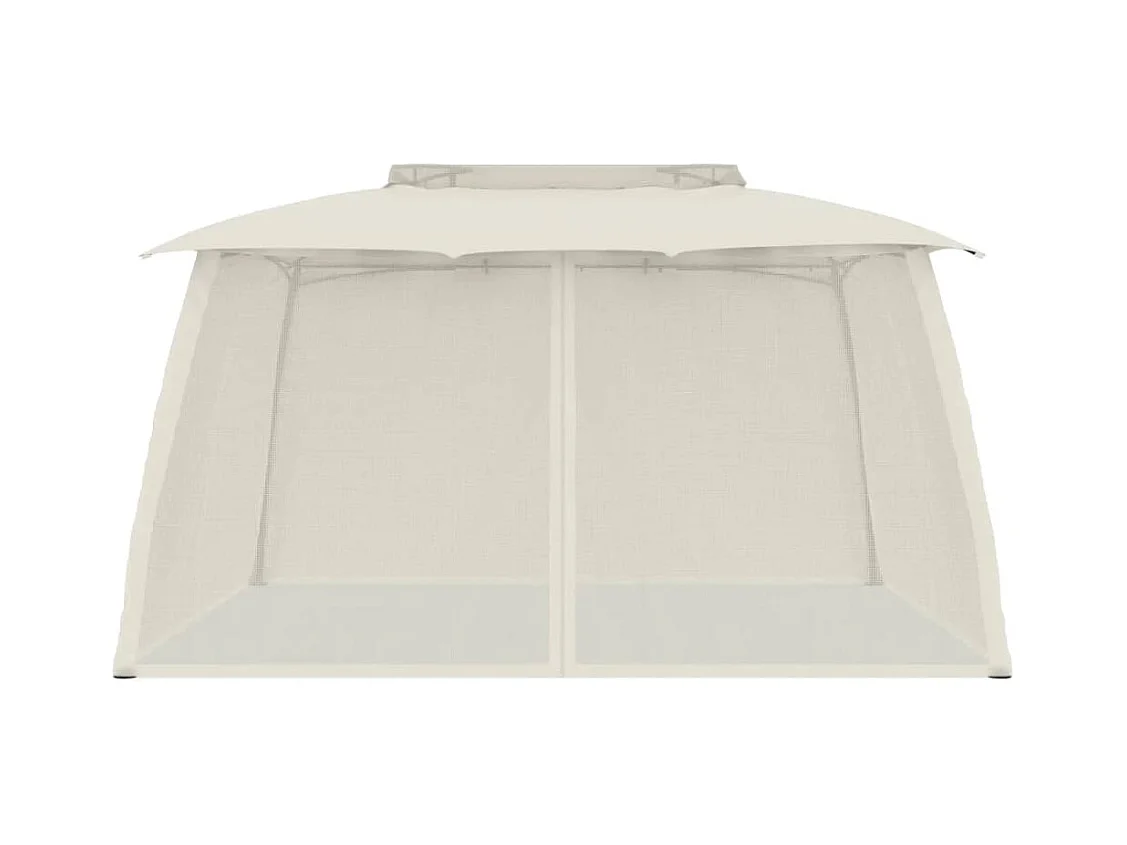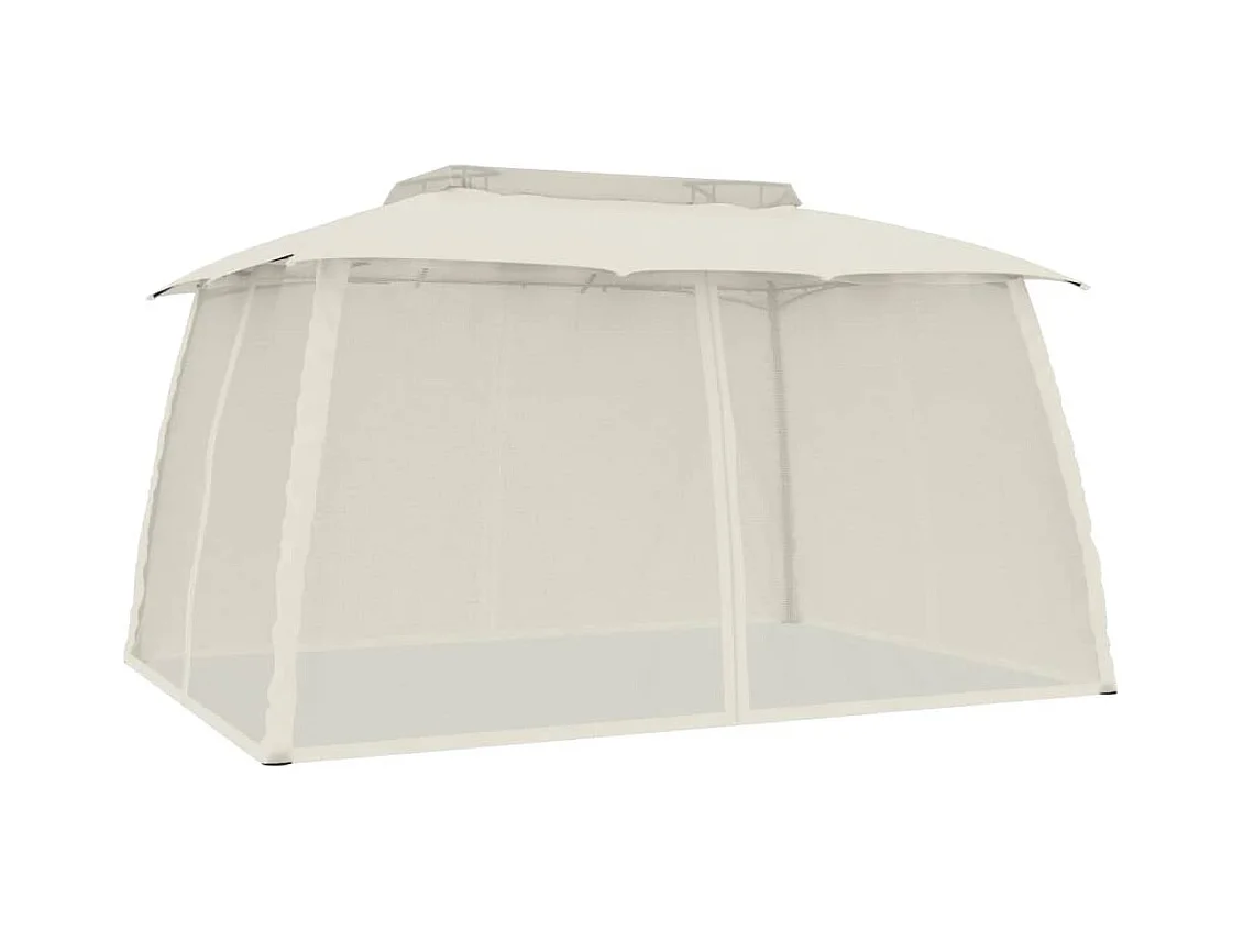 Gazebo con Tetto Doppio e Pareti Rete Crema 3,93x2,93 m Acciaio