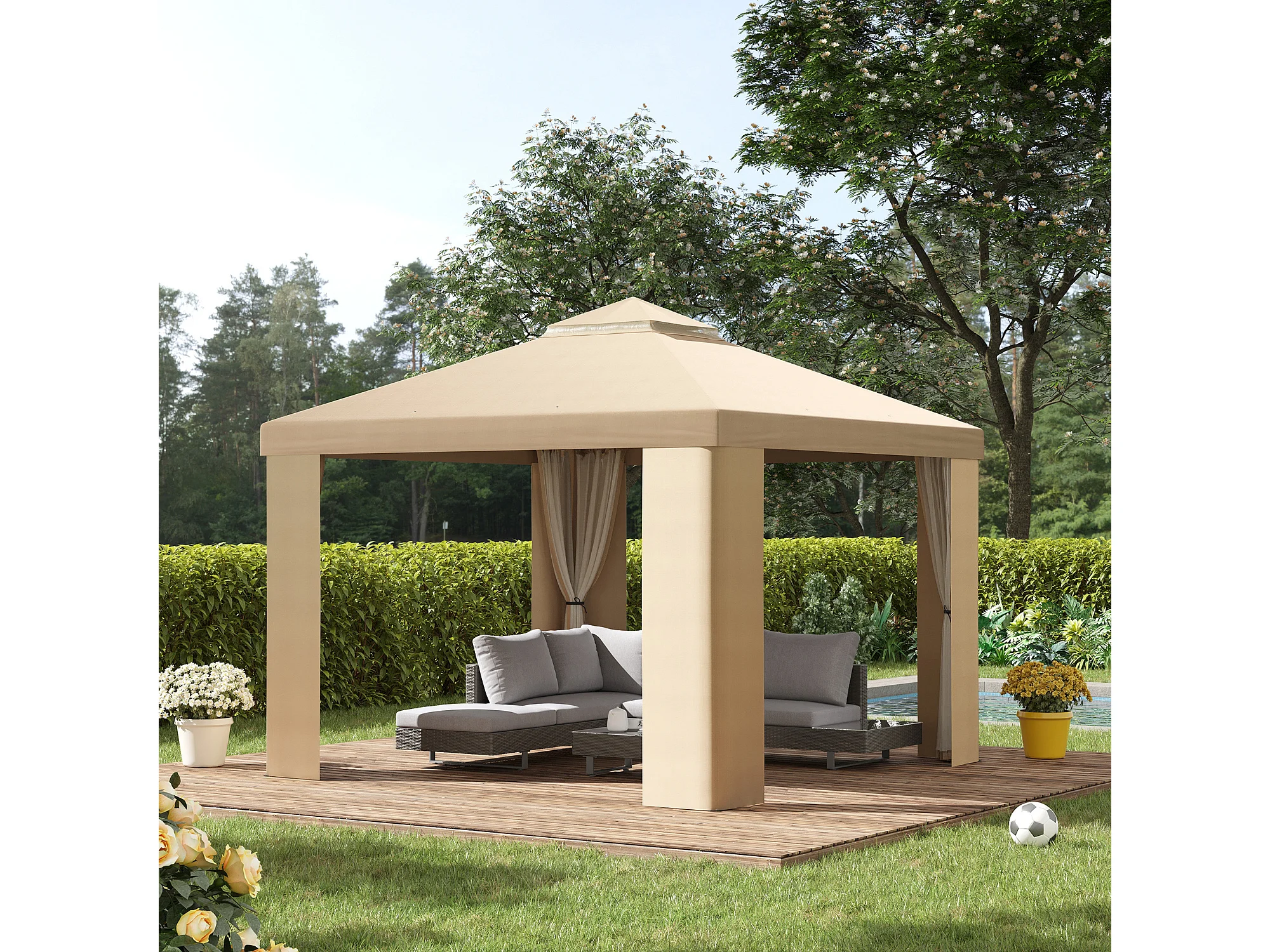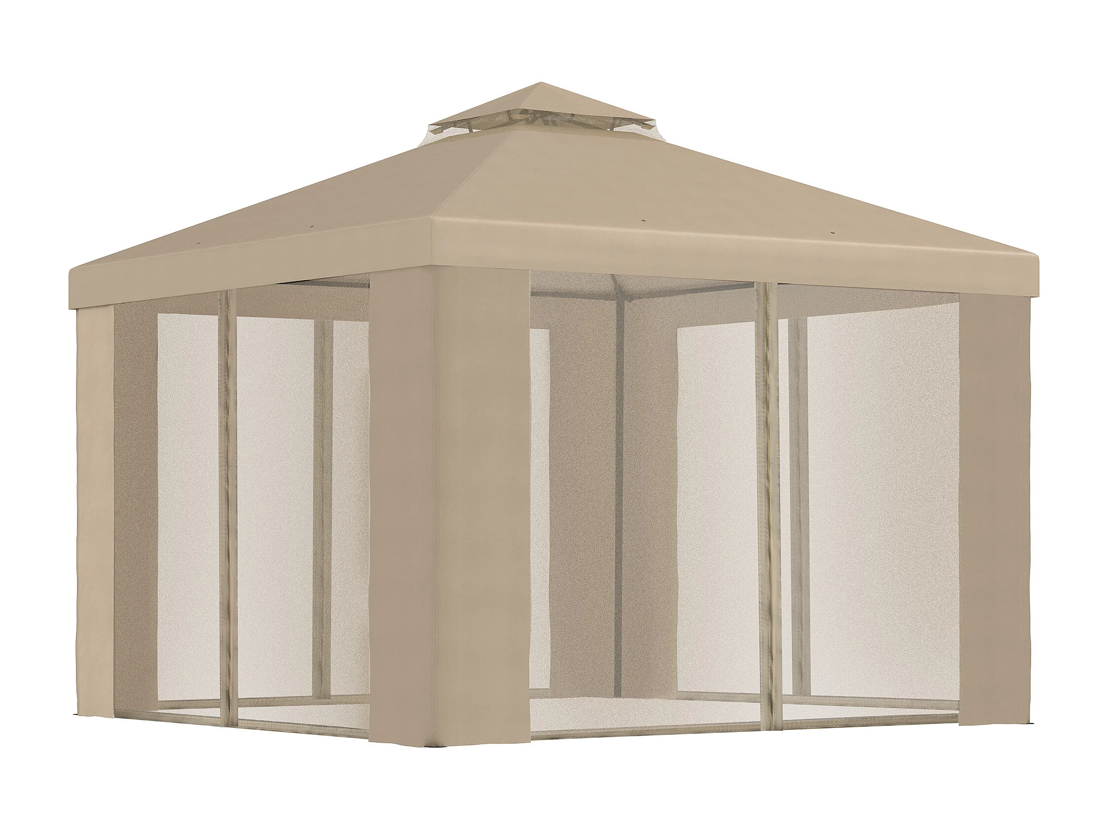 Gazebo da giardino 3x3 m con zanzariera e tetto a 2 livelli color kaki