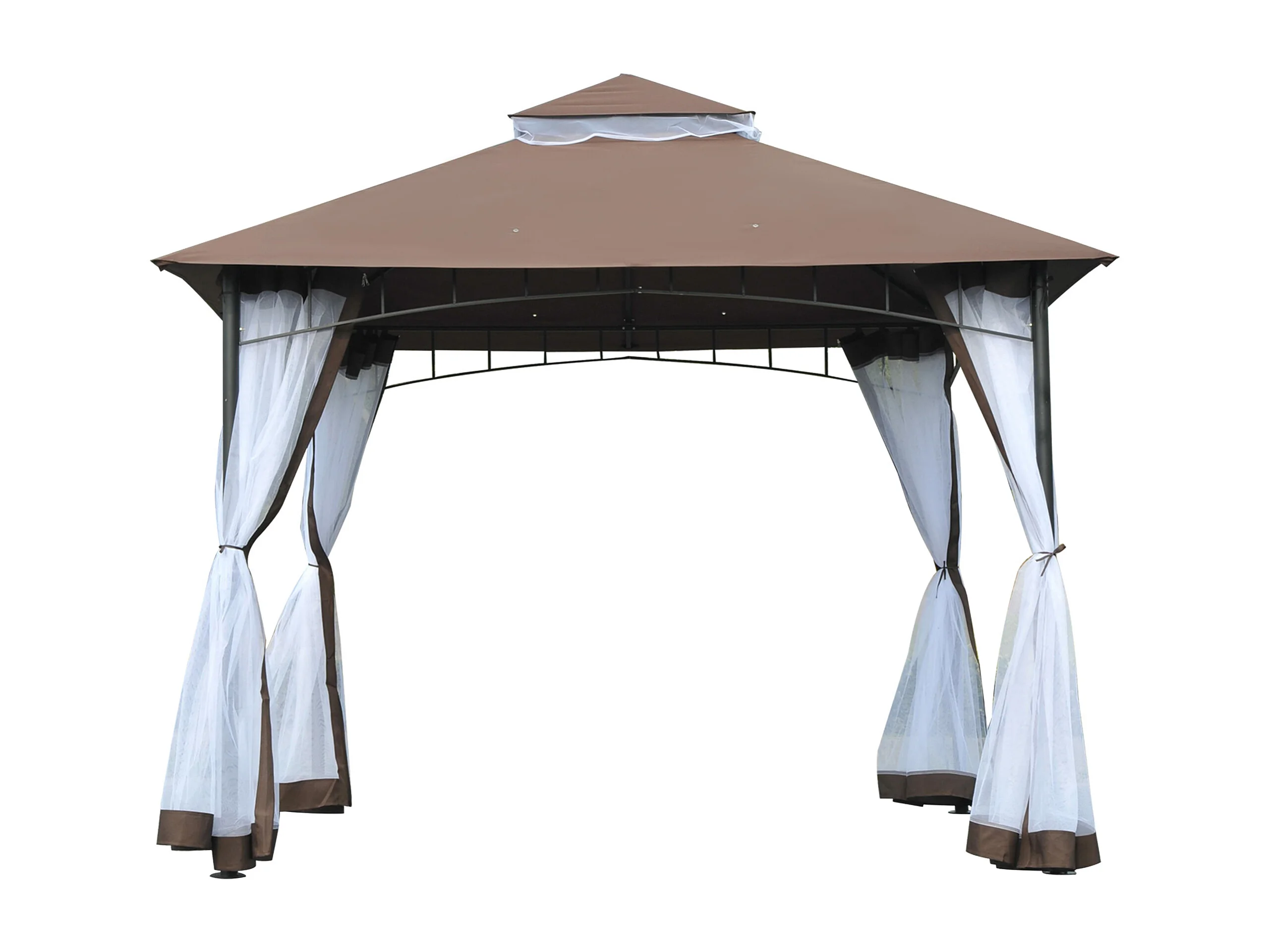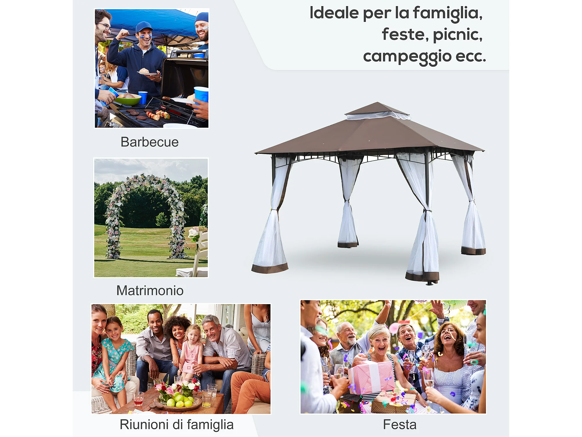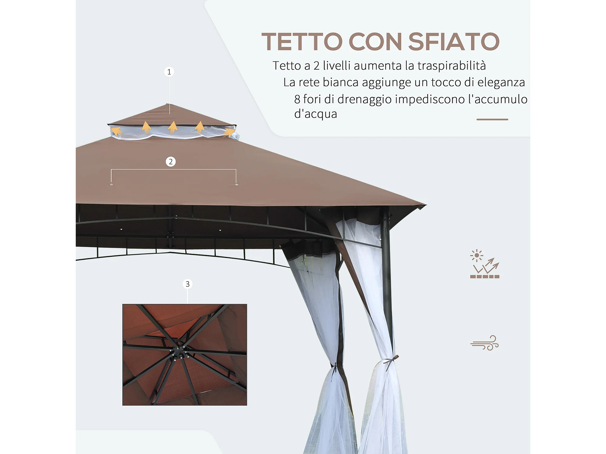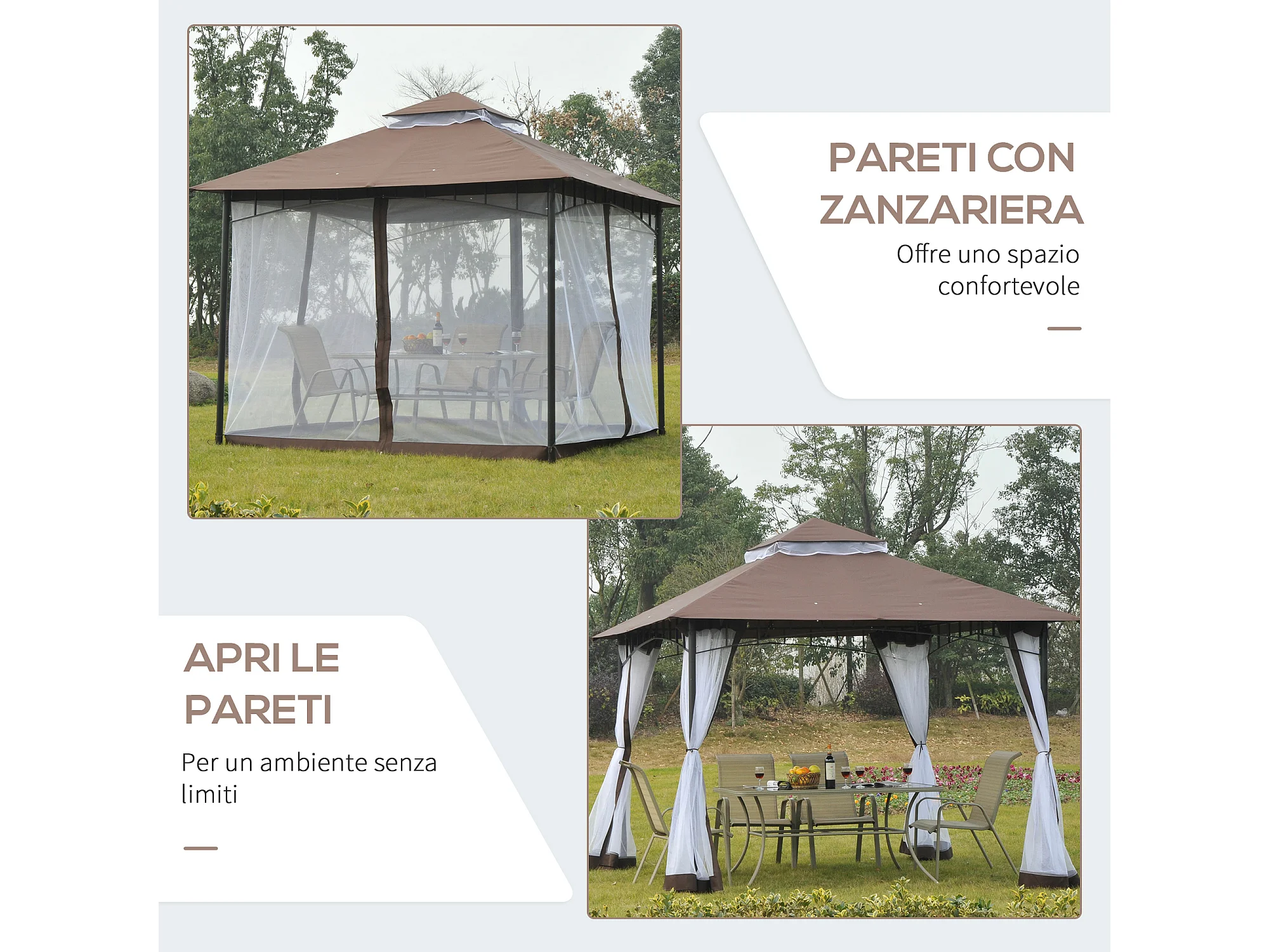 Gazebo da giardino 3x3m con zanzariera e tetto a 2 livelli