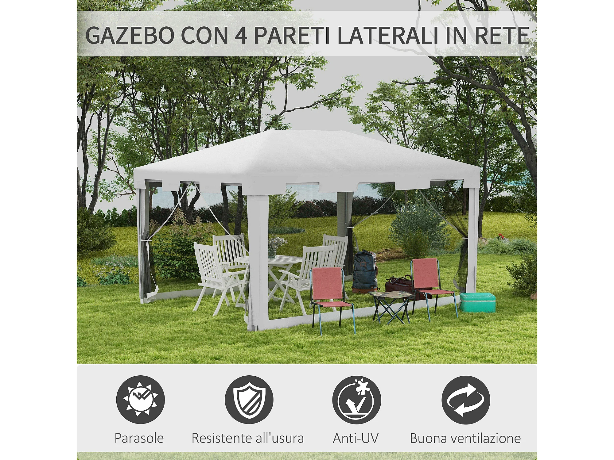 Gazebo da giardino 4x3 m in metallo e pe bianco e nero