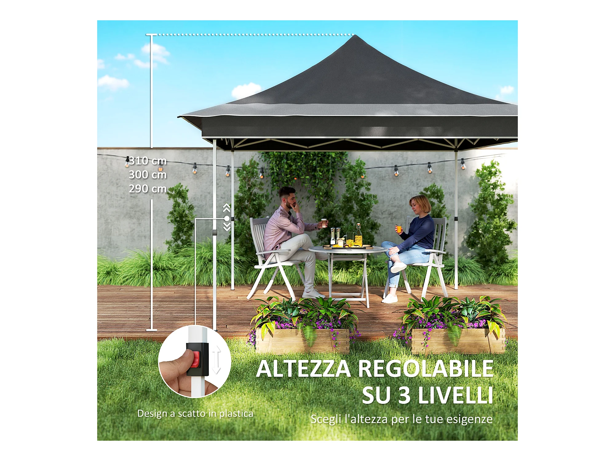 Gazebo da giardino pop up 3x3 m con luci led solari bianco