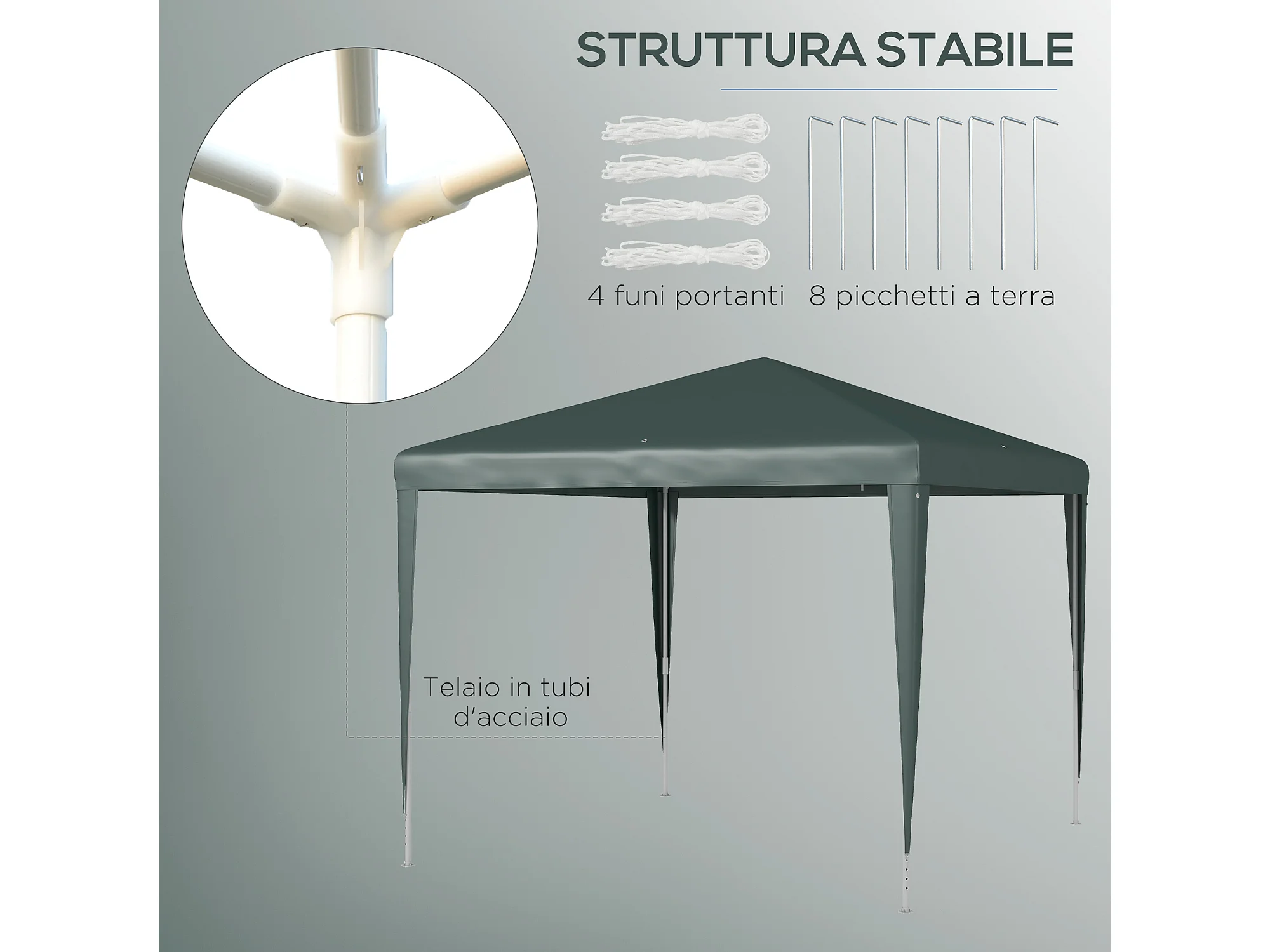 Gazebo da giardino con viti e corde in acciaio pe verde scuro