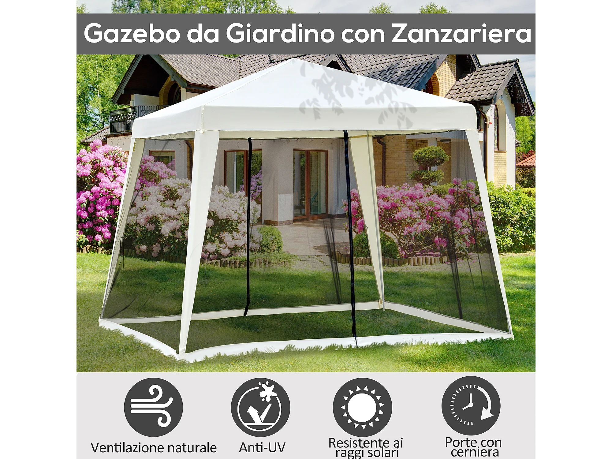Gazebo da giardino impermeabile con zanzariera beige