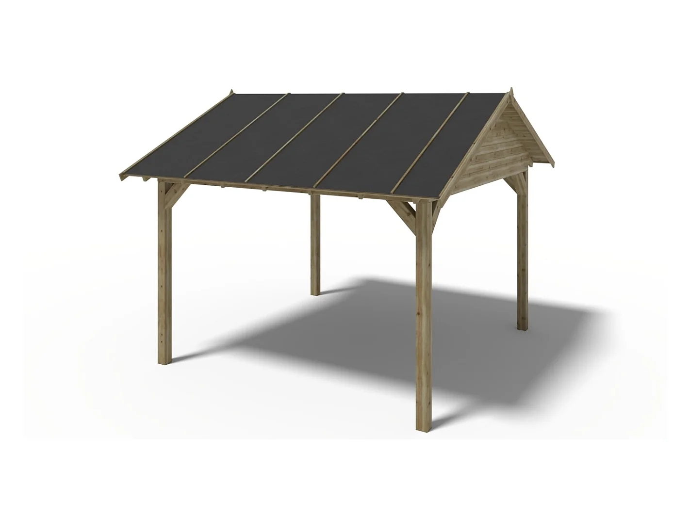 Tettoia posto auto coperto in legno 3.04x5.12 m - 15.57 m2 - copertura con lastra in acciaio - CAR16+BLACHA1 - ALTANKA