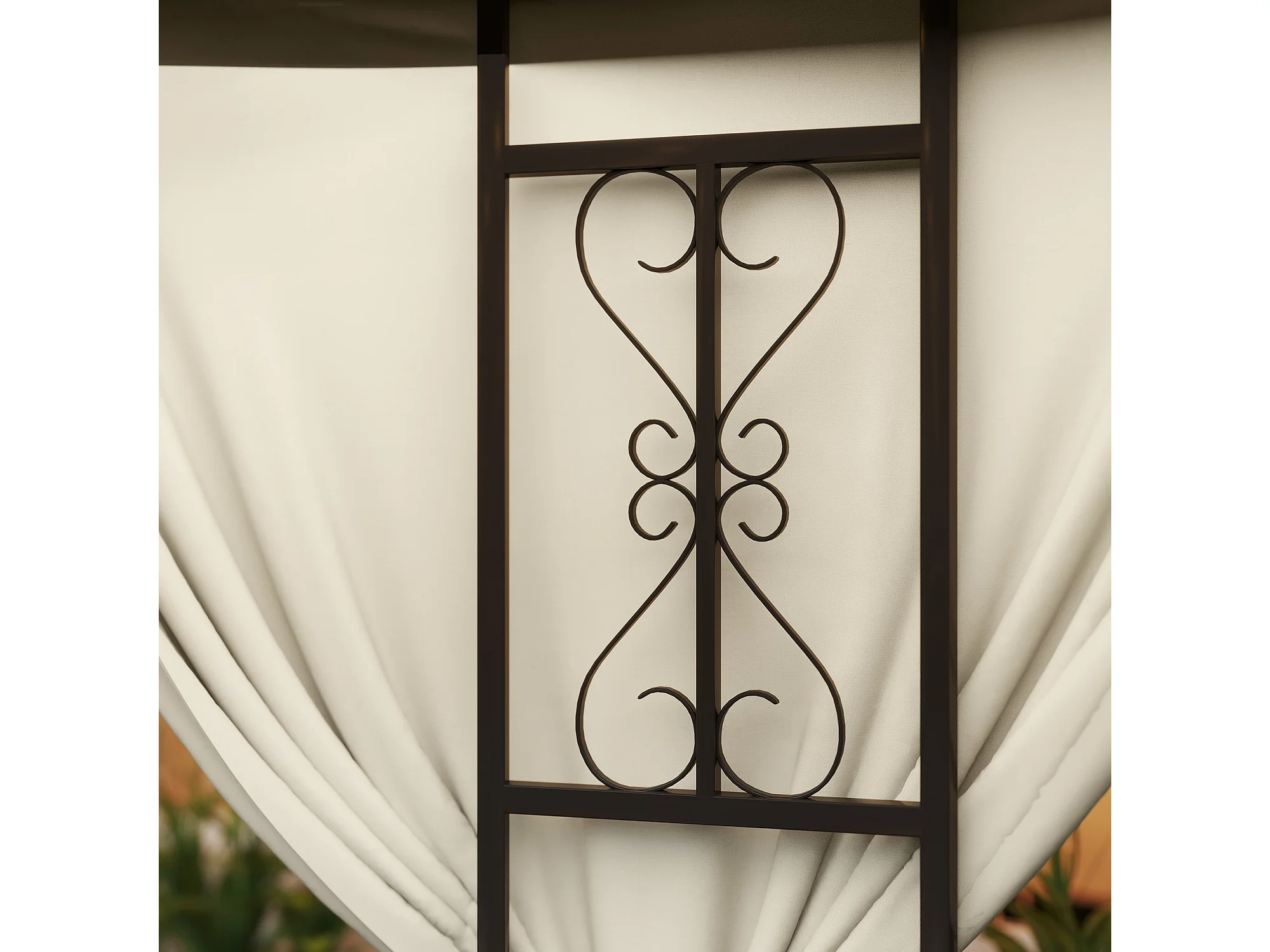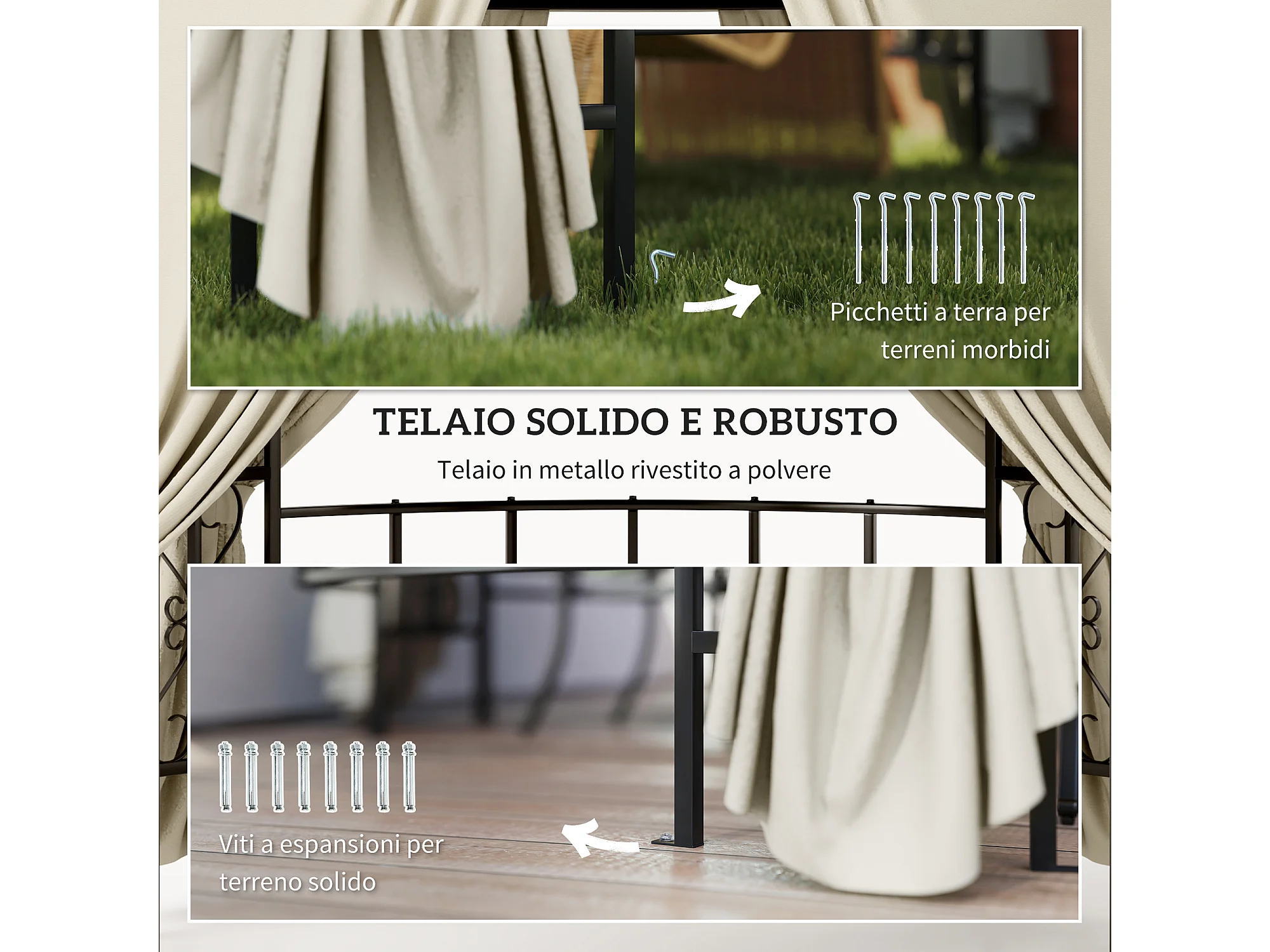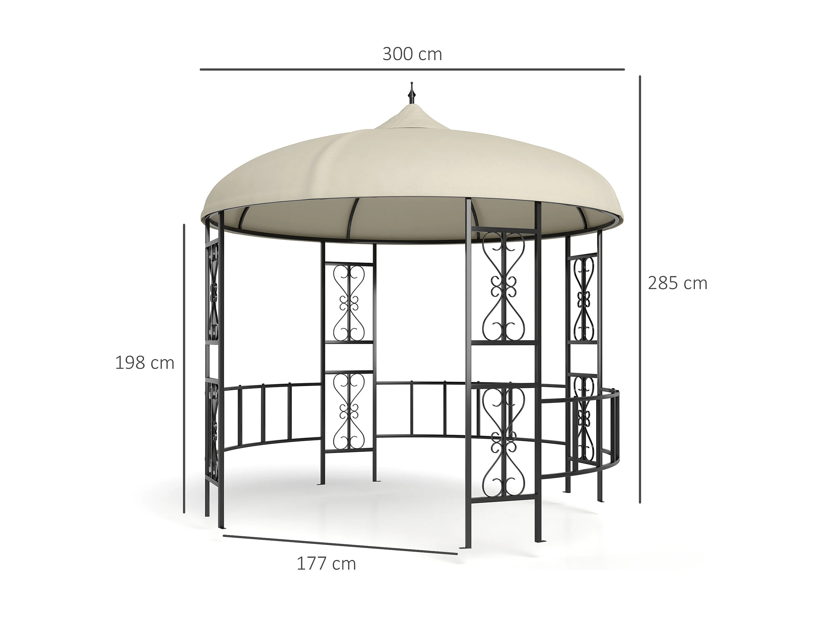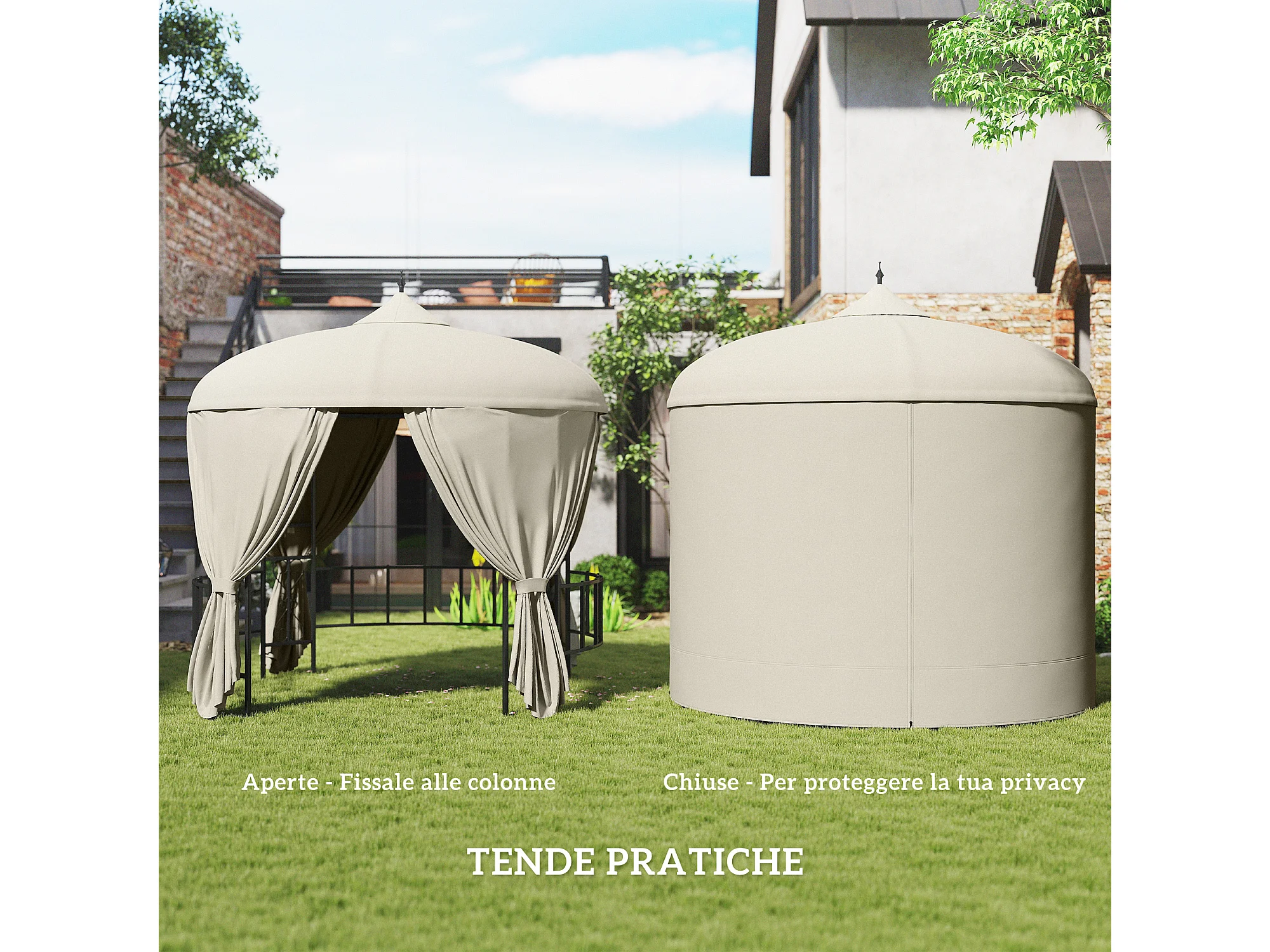 Gazebo da giardino rotondo Ø3m con tende parasole beige