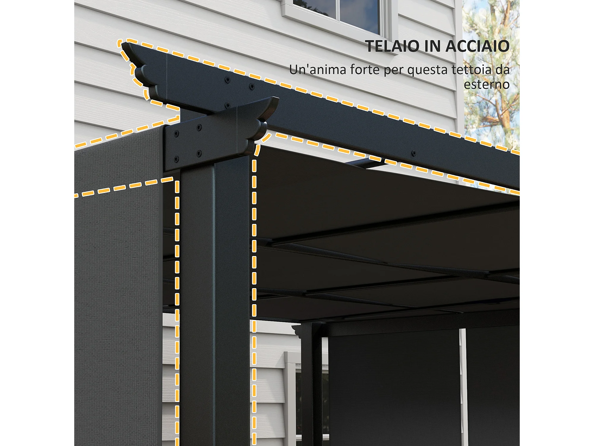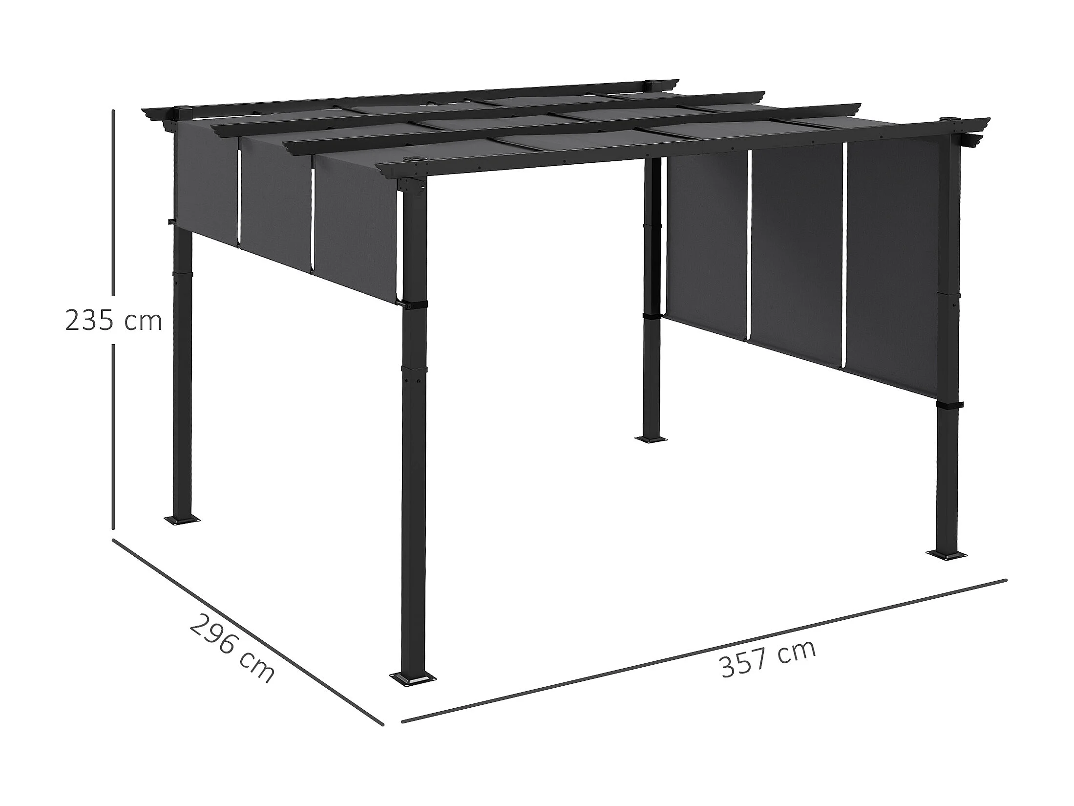 Gazebo pergola 3x3.5m con 3 tettucci regolabili anti uv grigio