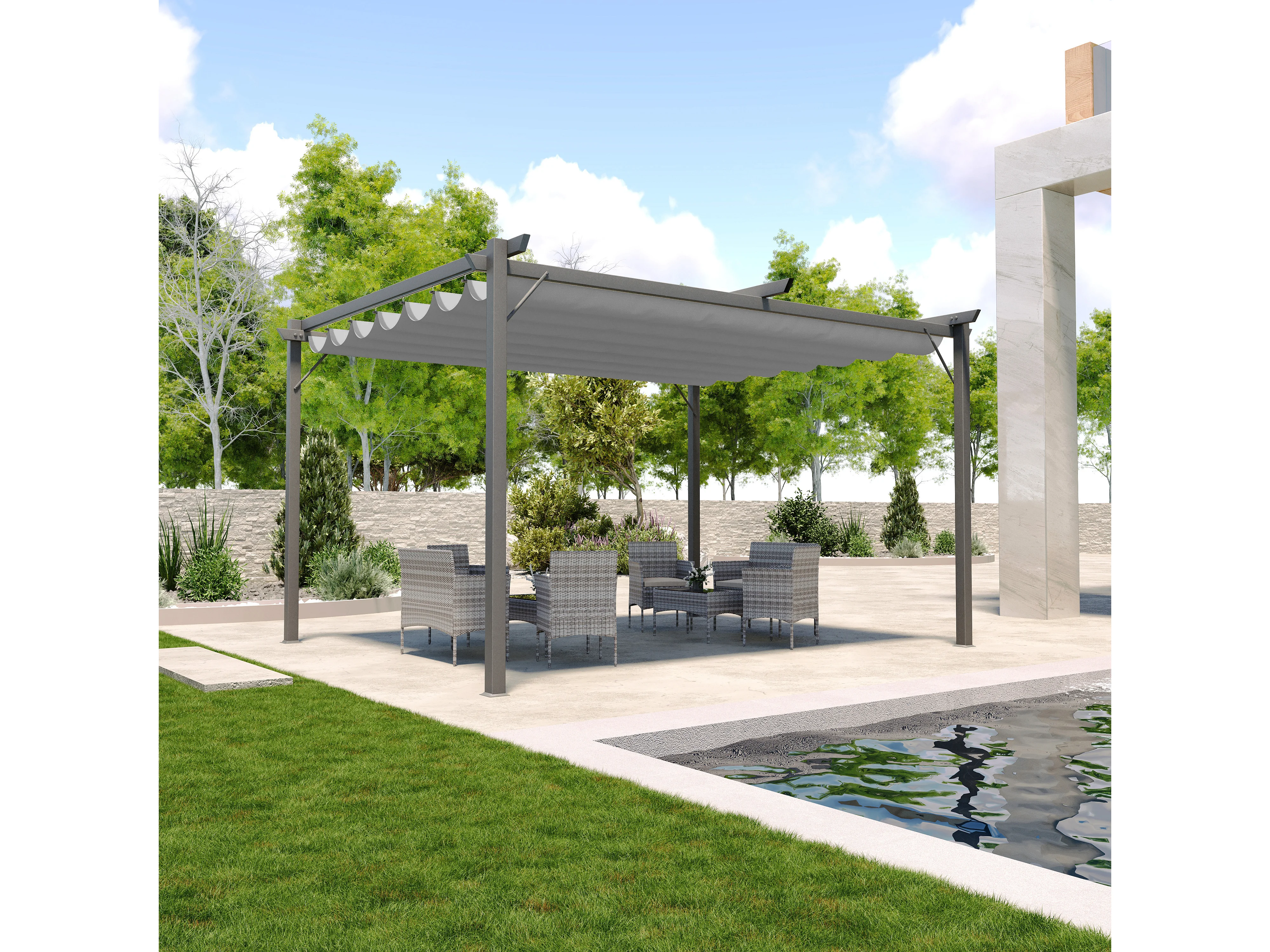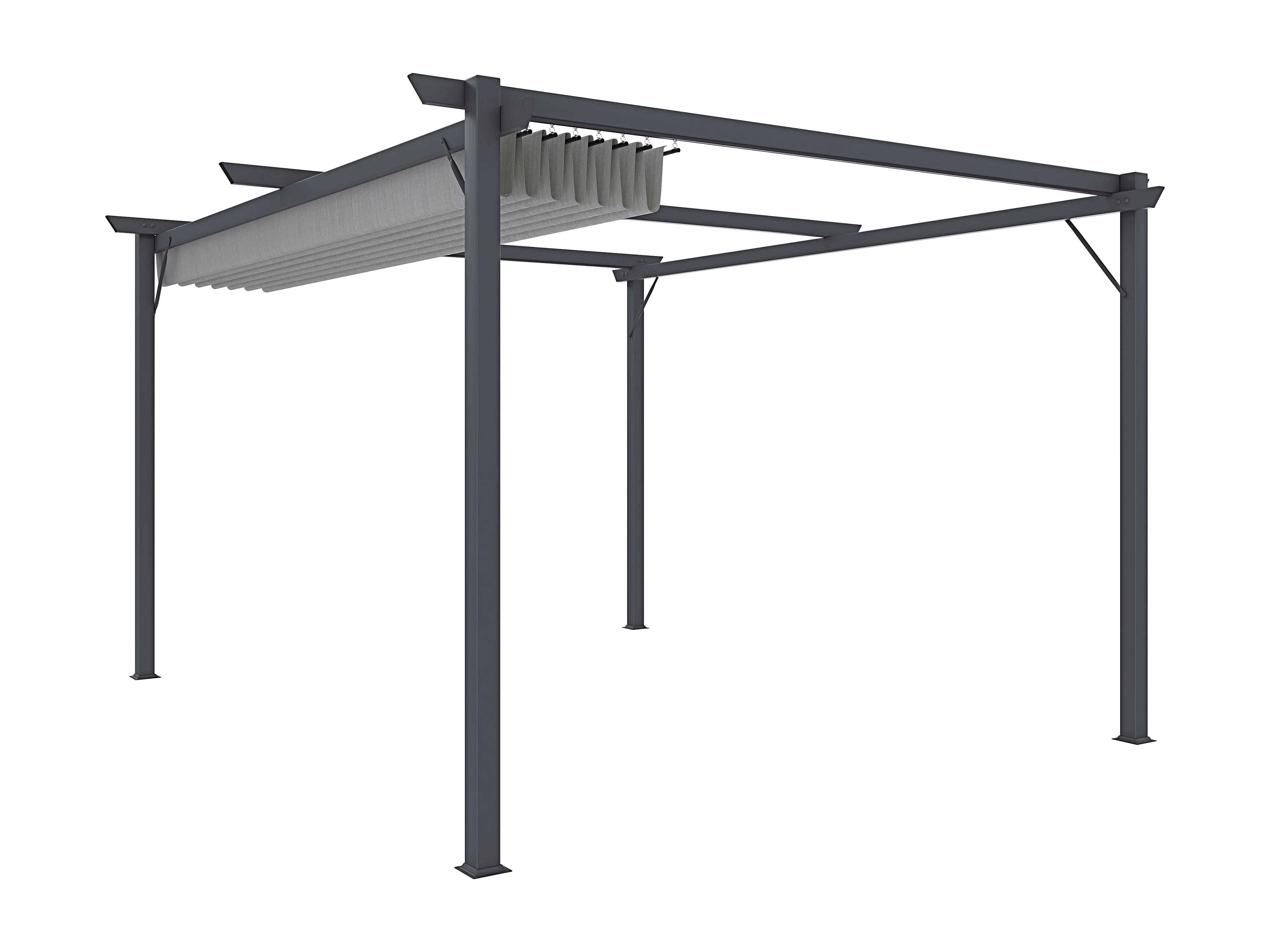 Gazebo Pergola 3x4 M Pergolato Con Telo Grigio Impermeabile Retrattile Richiudibile Struttura In Acciaio Per Giardino Terrazzo Piscina Esterno Fiere
