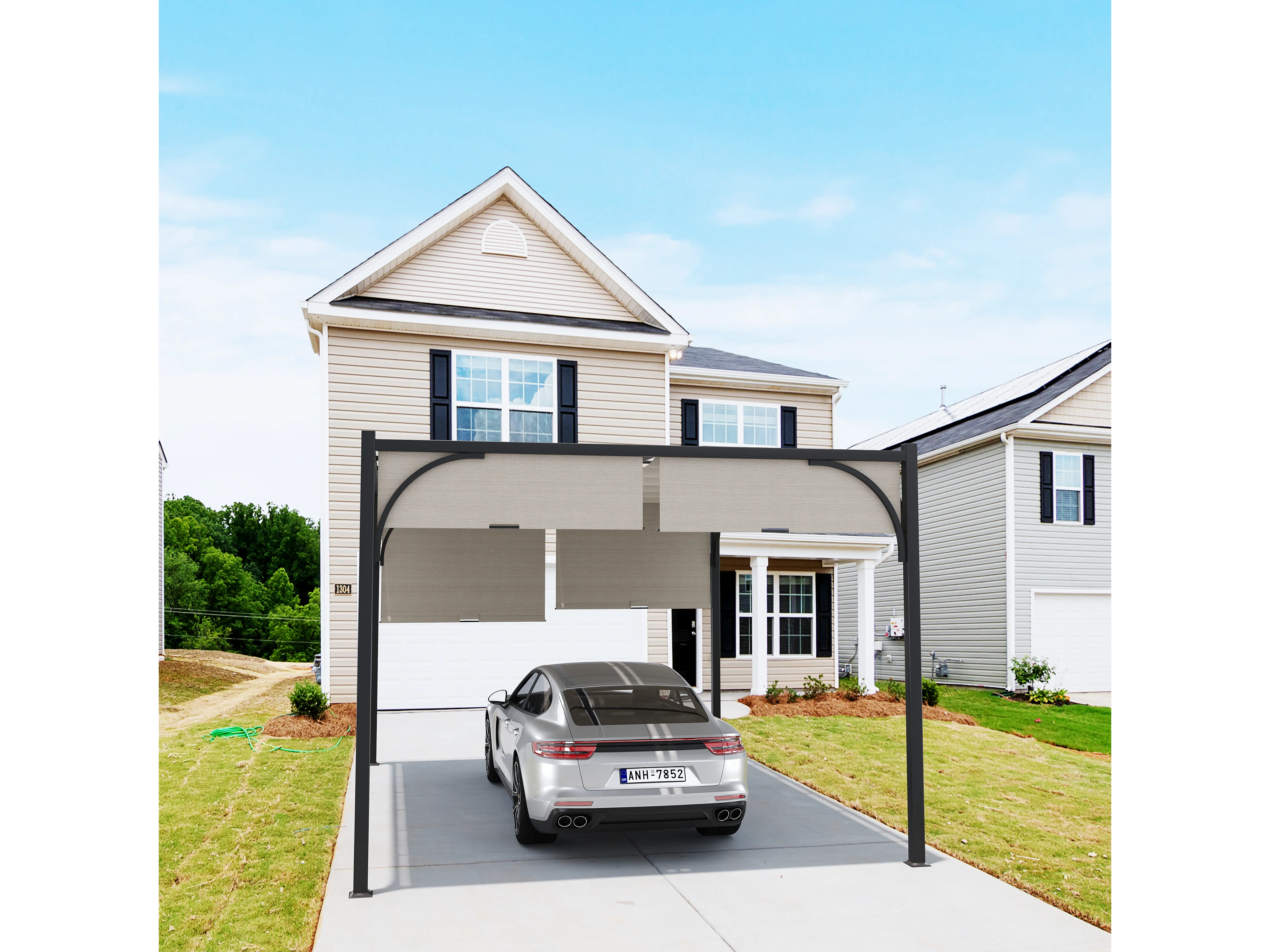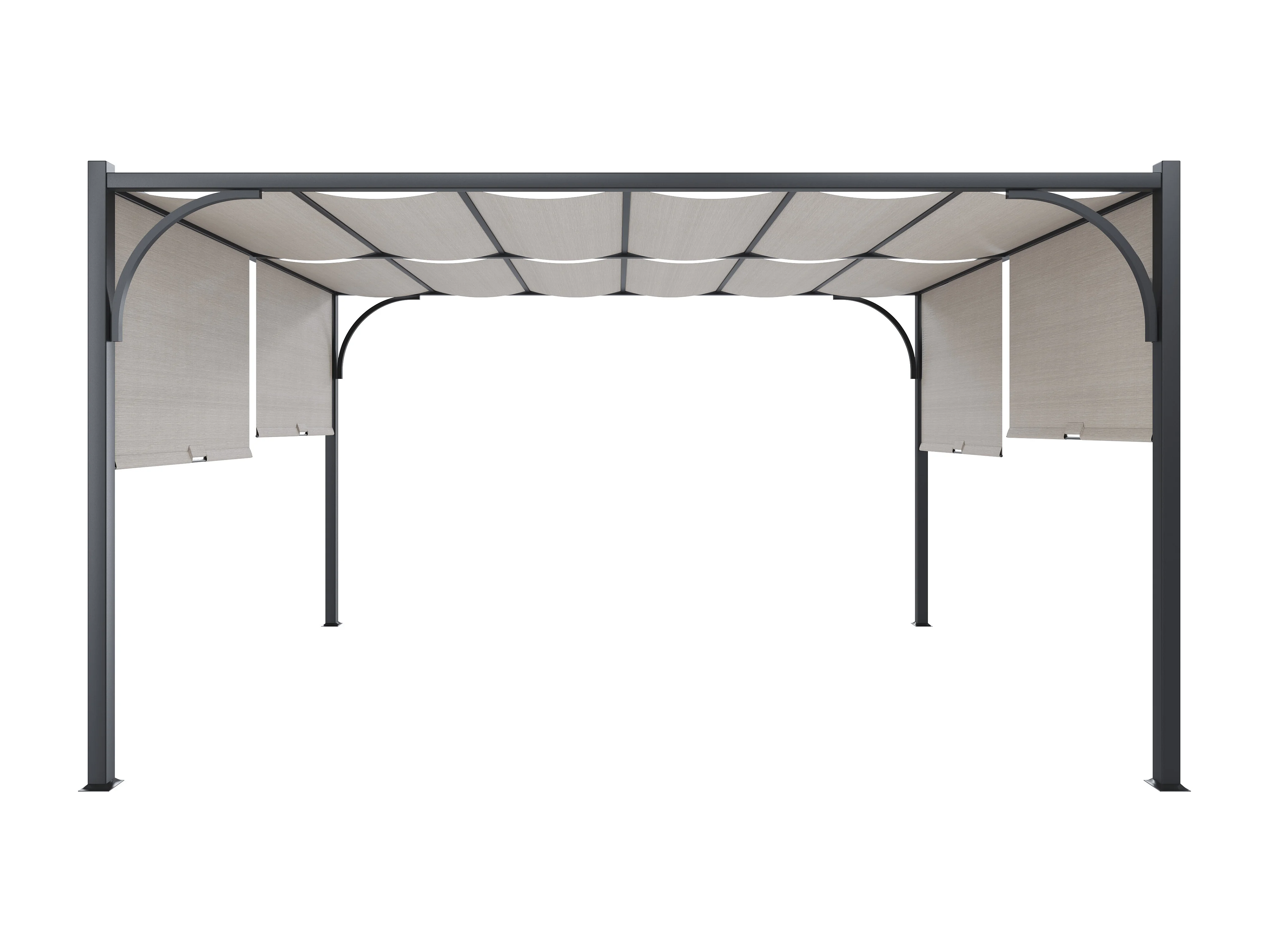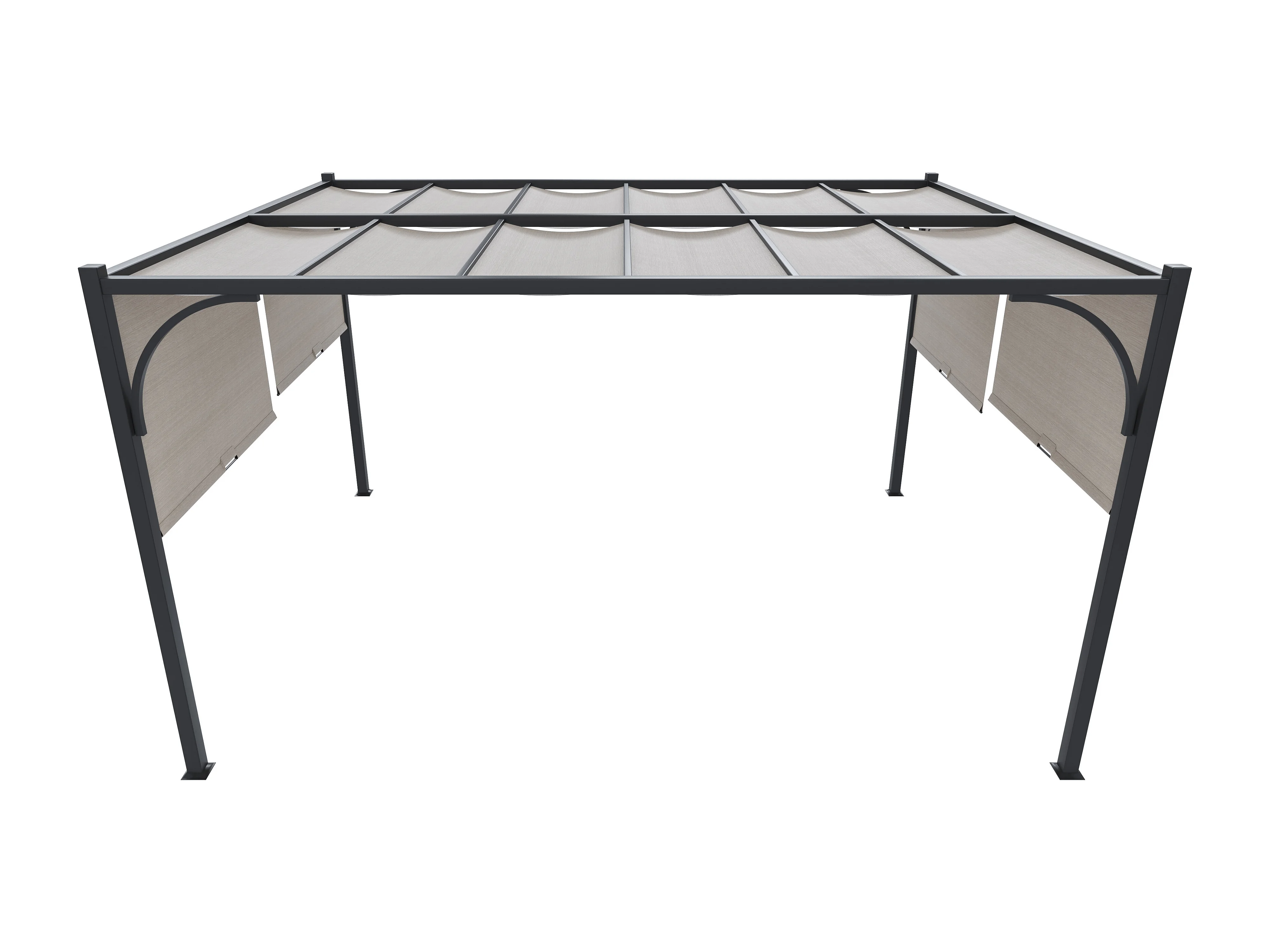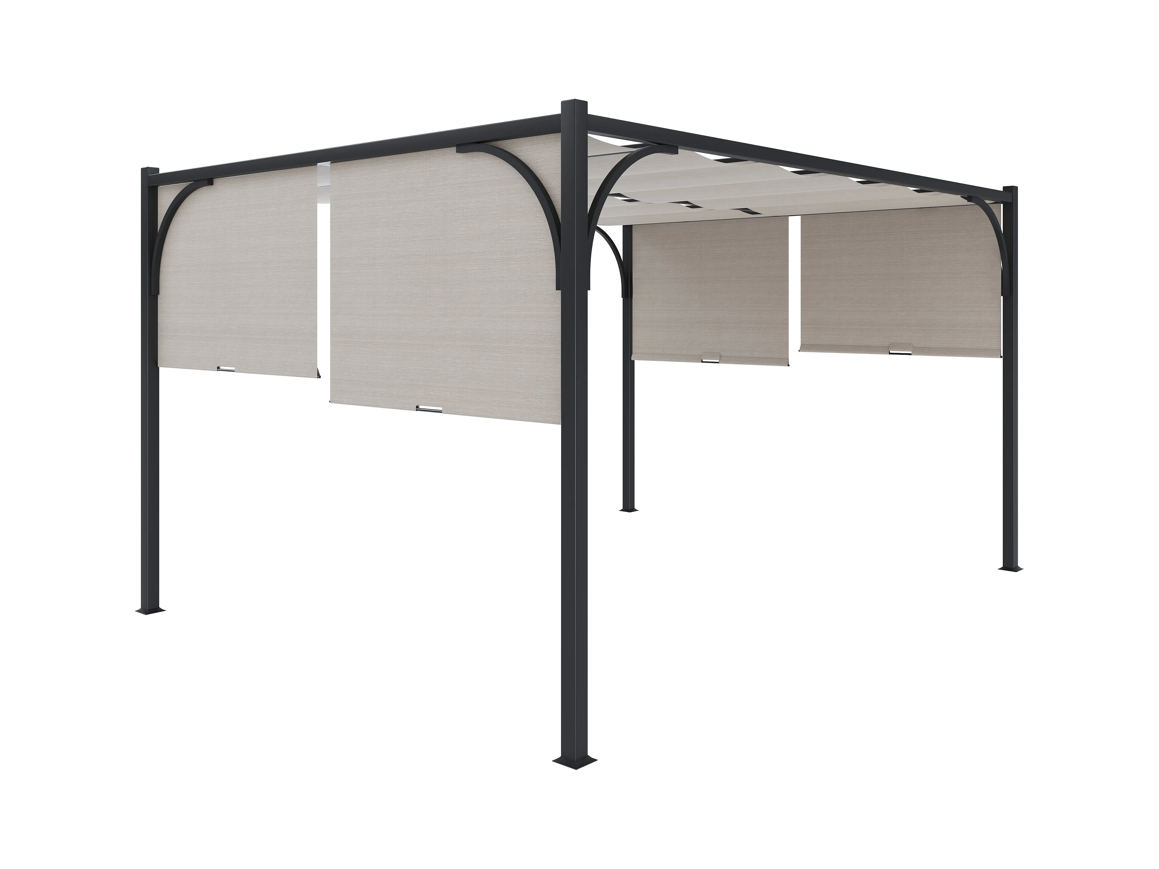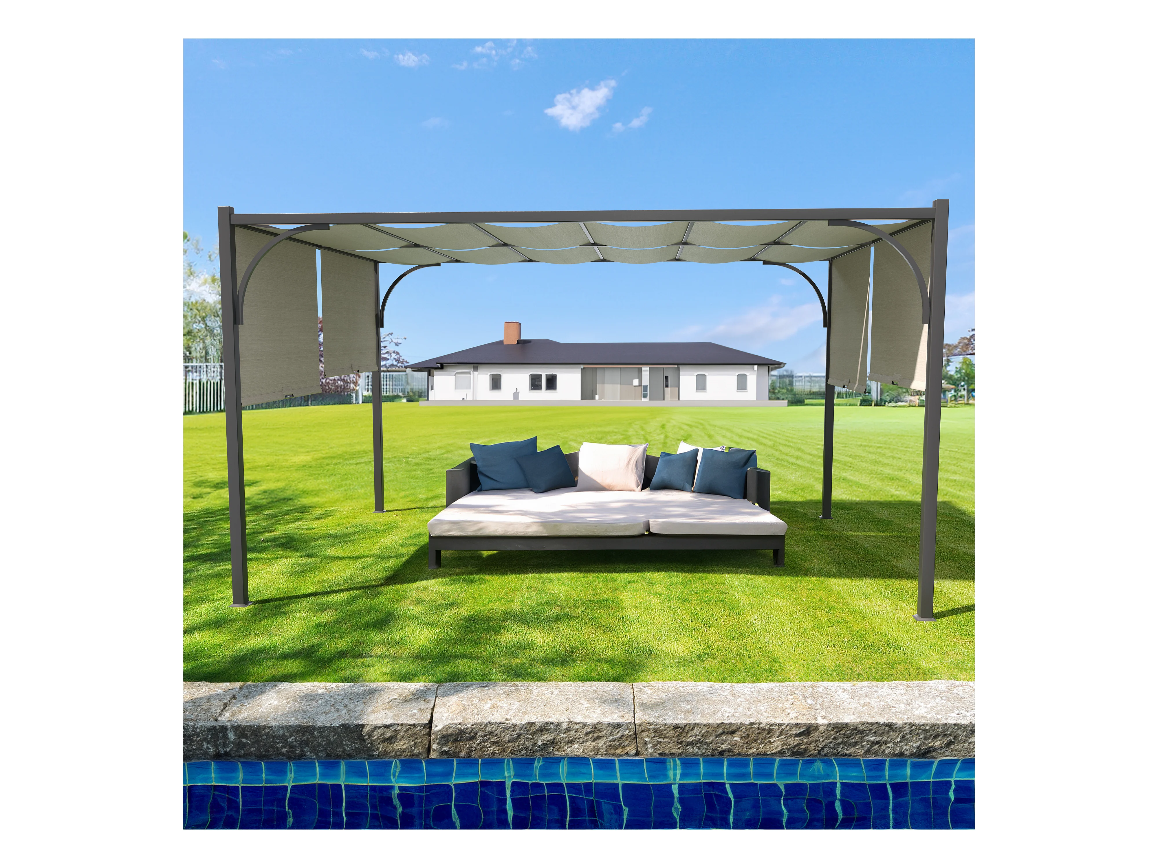Gazebo Pergola 3x4 M Pergolato Tetto Scorrevole Telo Beige Impermeabile Retrattile Richiudibile Struttura Nera Acciaio Giardino Terrazzo Piscina