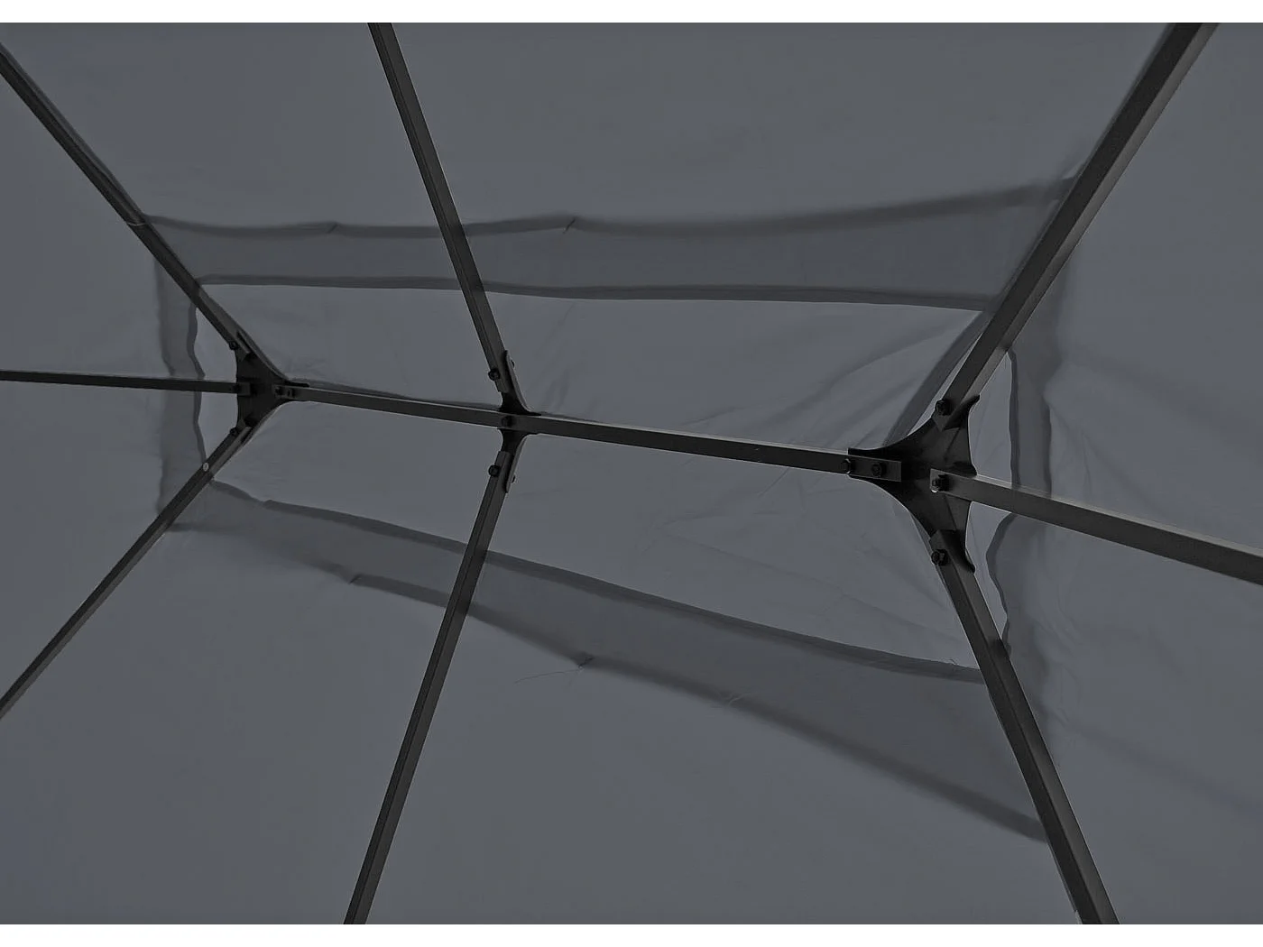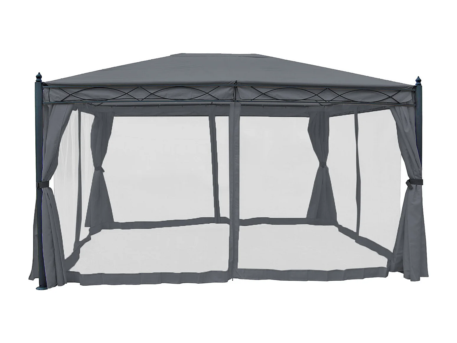 Gazebo pergola baldacchino moderno elegante Cadice acciaio poliestere 4x3m grigio con zanzariere e tende