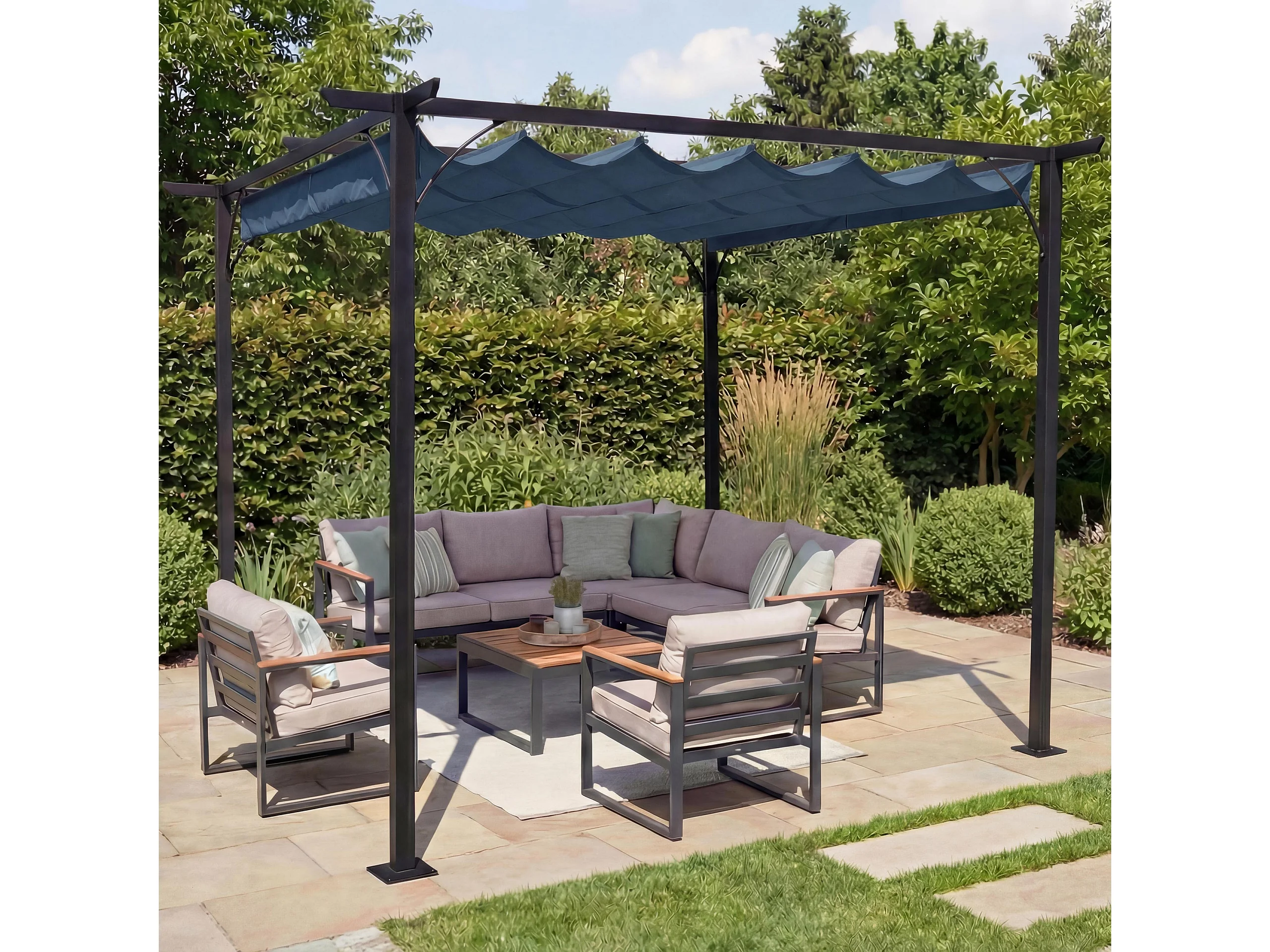 Gazebo pergola baldacchino moderno elegante giardino patio MCW-C42 acciaio poliestere 3x3m blu