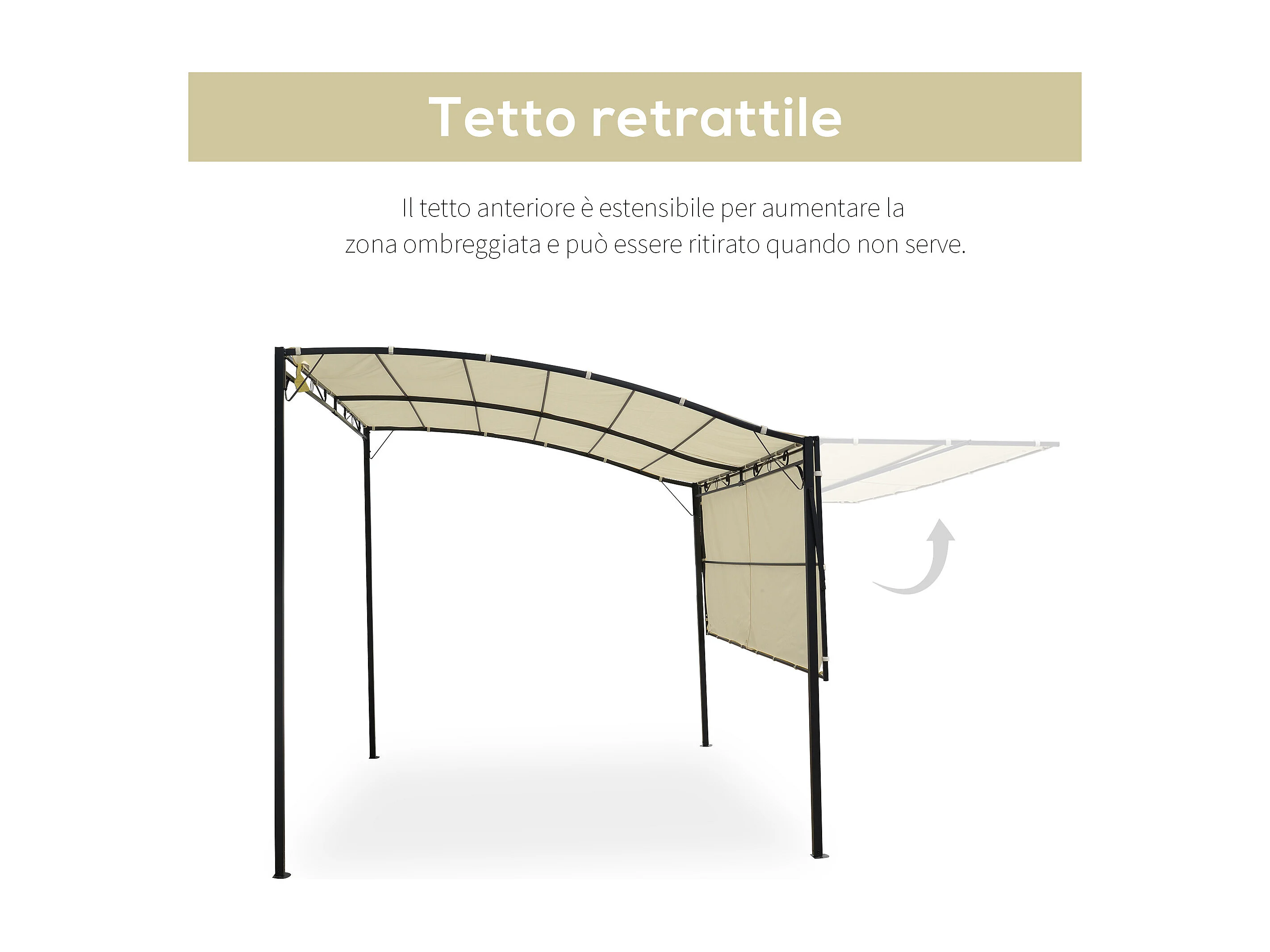 Gazebo pergola da giardino 3x2.5m con copertura in tessuto