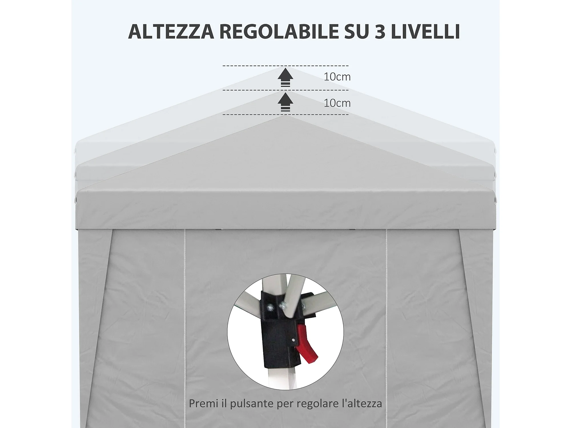 Gazebo pieghevole 3x3 m ad altezza regolabile grigio chiaro