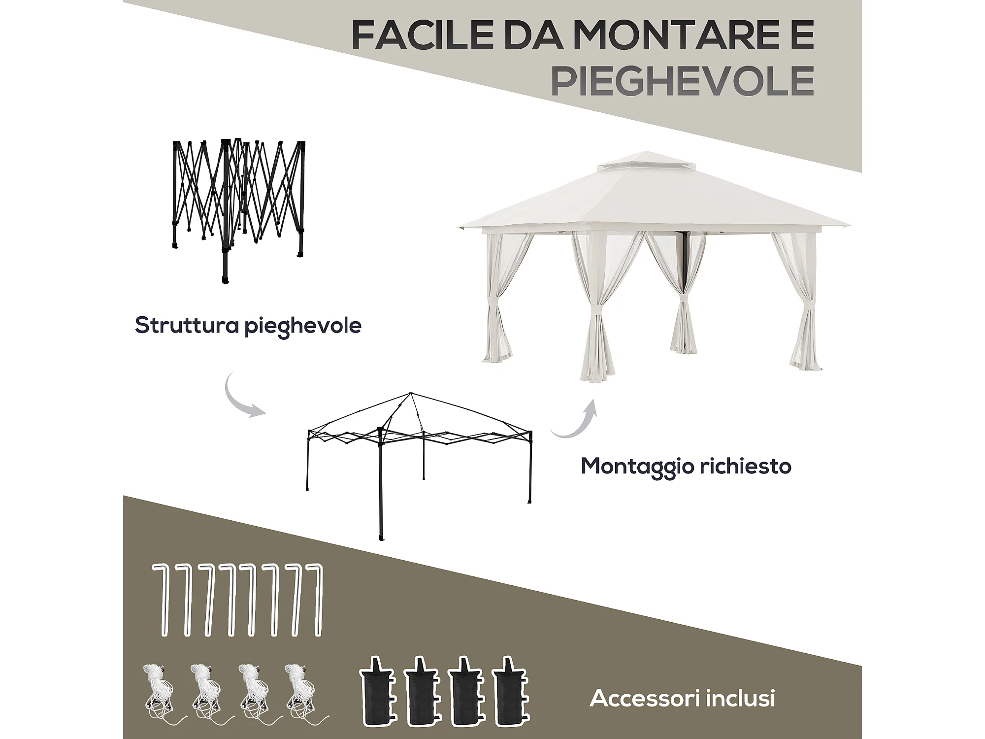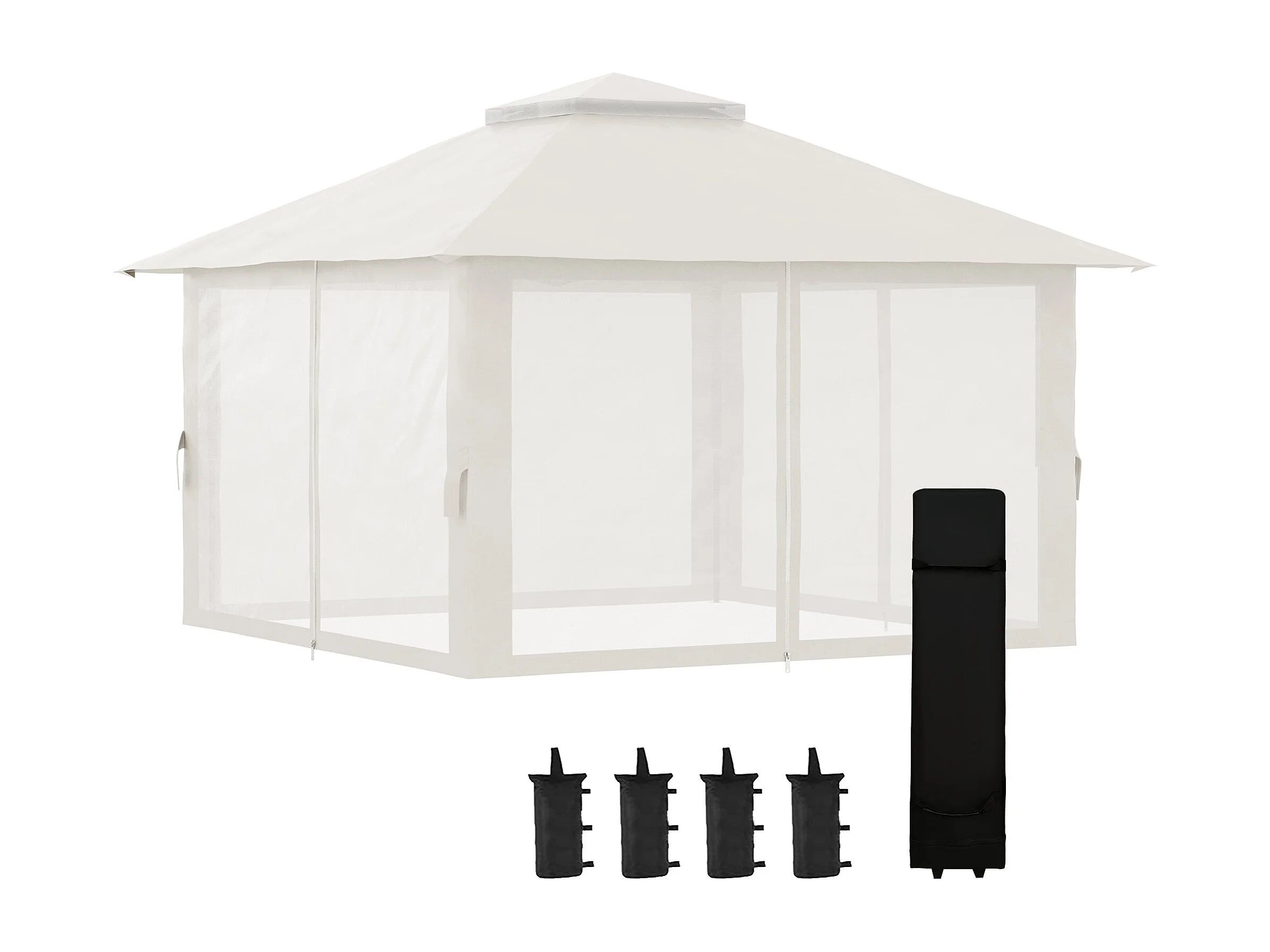 Gazebo pieghevole 4x4 con fori di drenaggio e zanzariere bianco crema