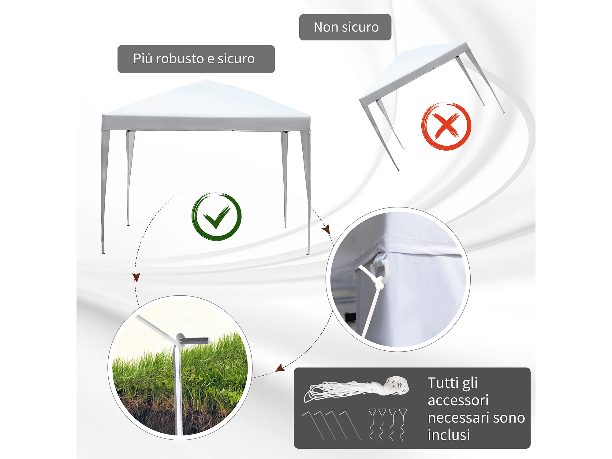 Gazebo Pieghevole con Corde e Picchetti da Giardino
