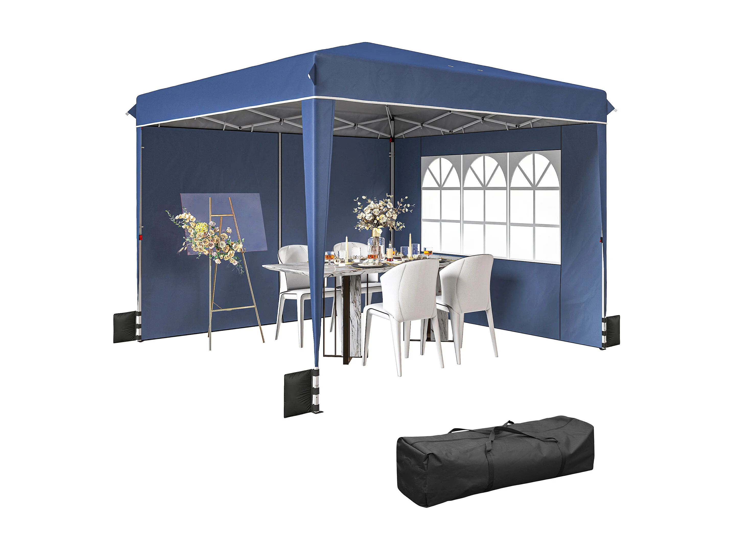 Gazebo pieghevole con pareti e protezione uv50+ blu scuro