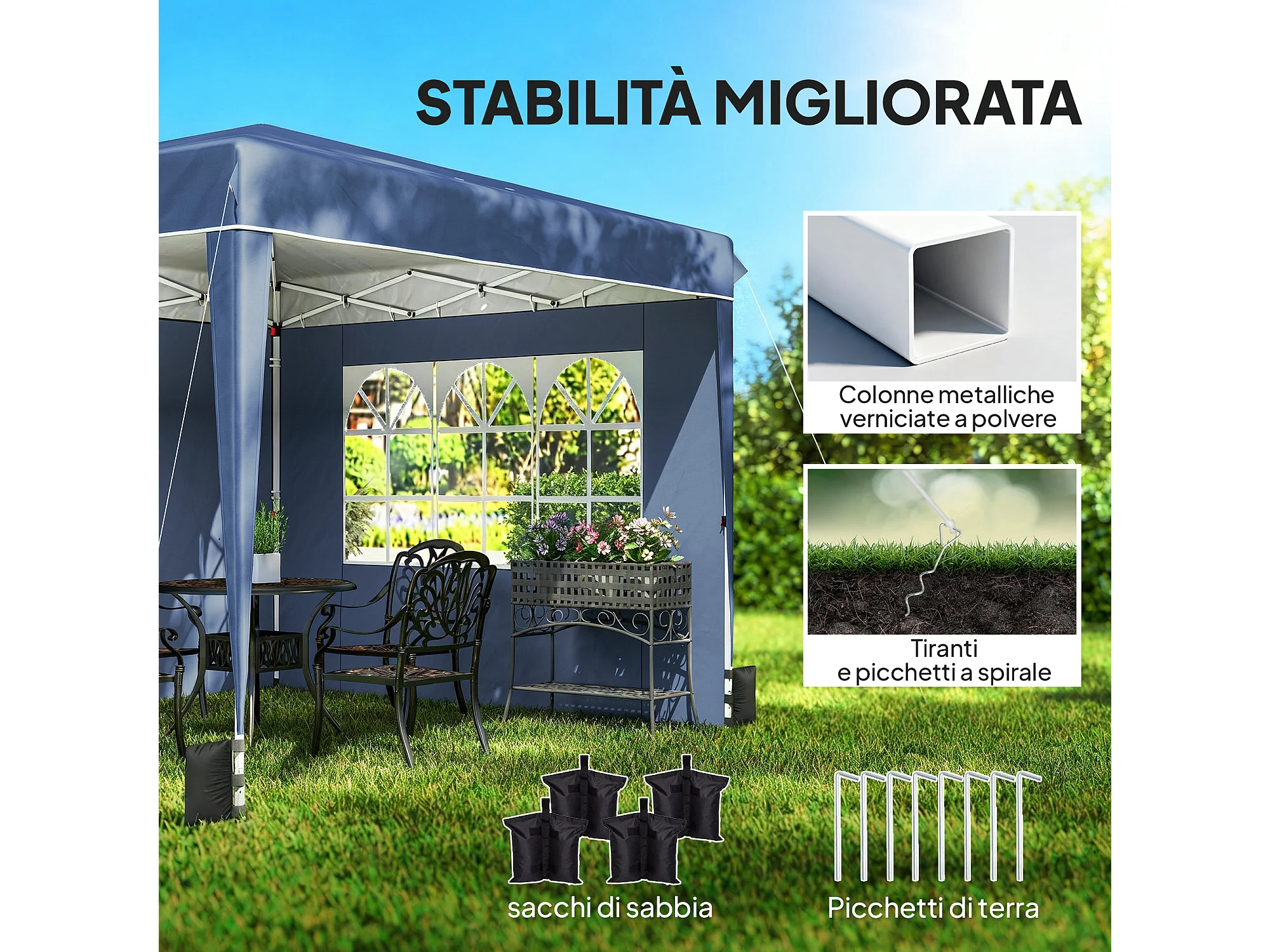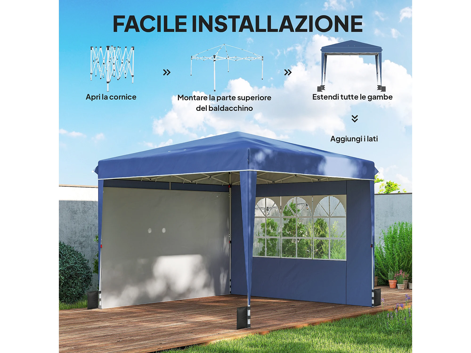 Gazebo pieghevole da giardino 2.4x2.4m in acciaio e poliestere blu