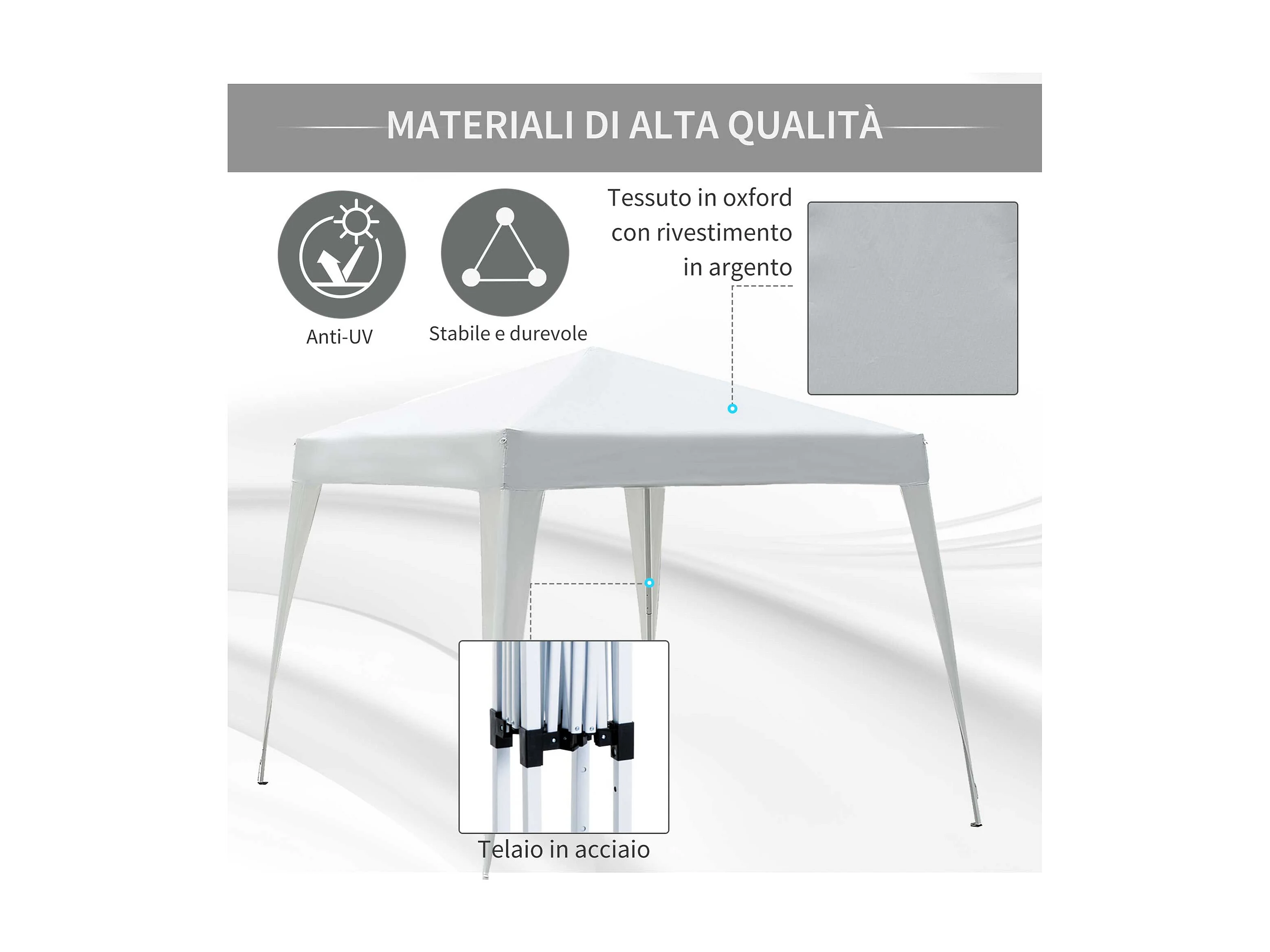 Gazebo pieghevole da giardino 2.4x2.4 m acciaio e poliestere