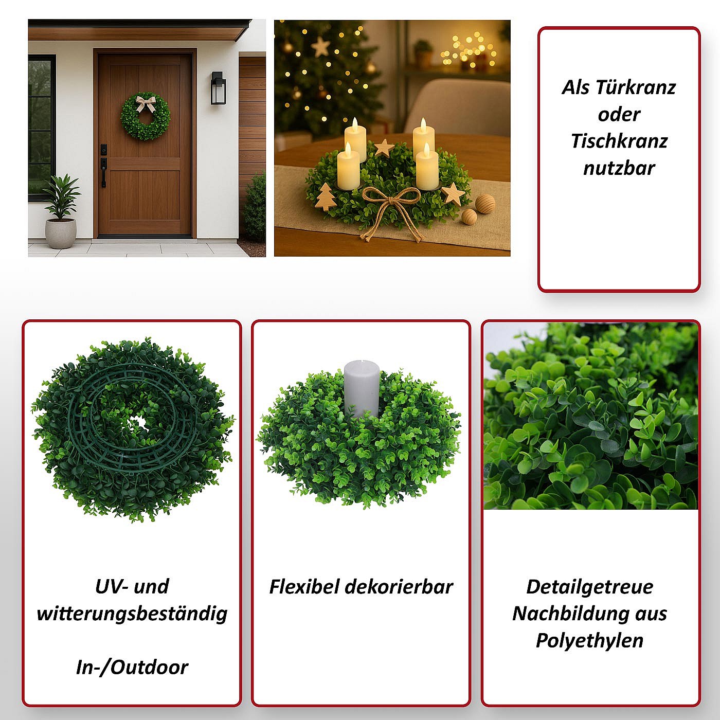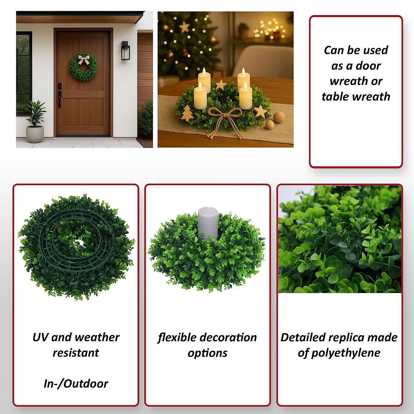 Ghirlanda artificiale MCW-O97, per porta, da tavolo, decorazione in bosso per interni/esterni Ø 45 cm