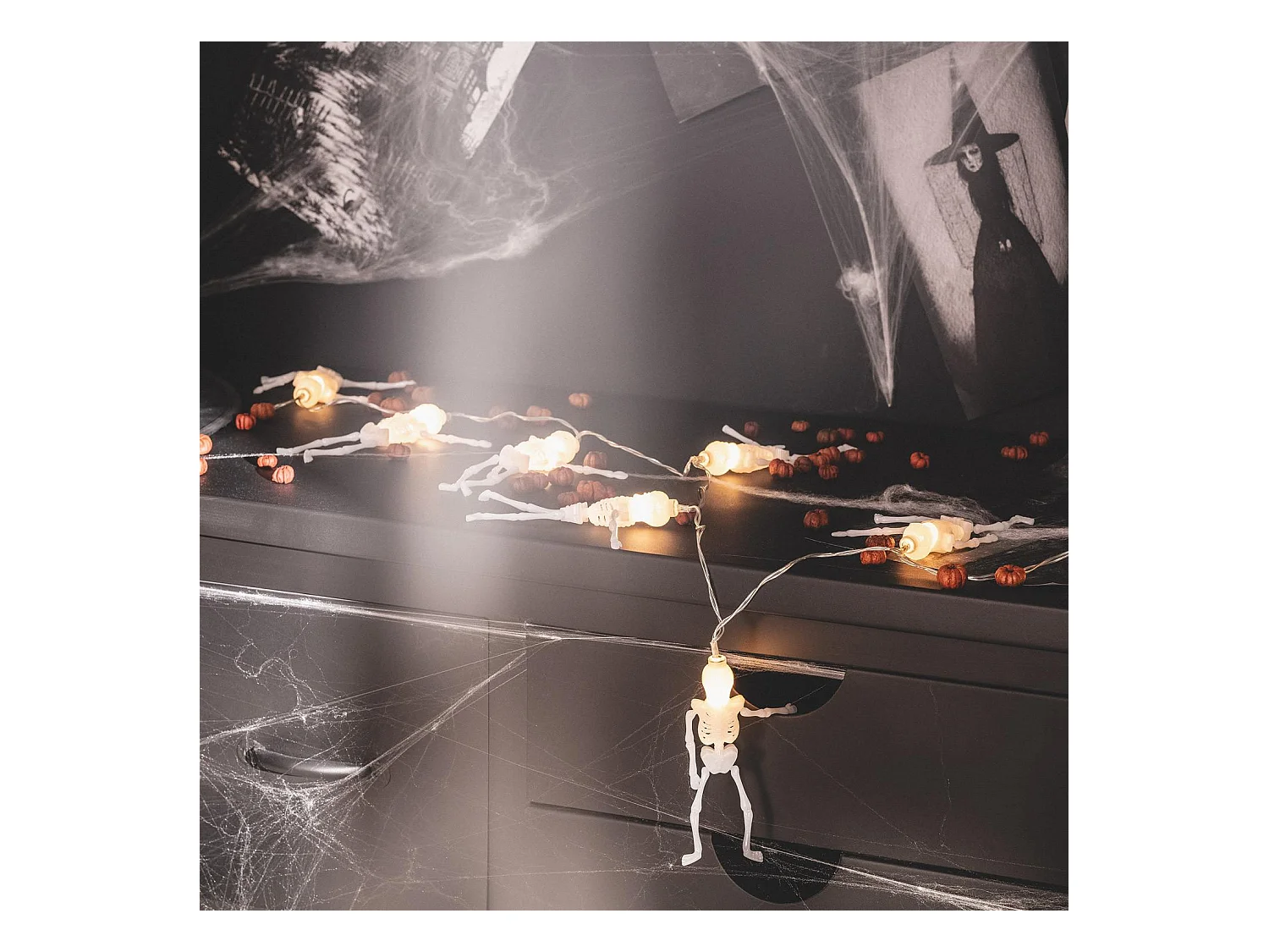 Ghirlanda LED Scheletri di Halloween con Batteria 1,65m Bianco Caldo 2700K