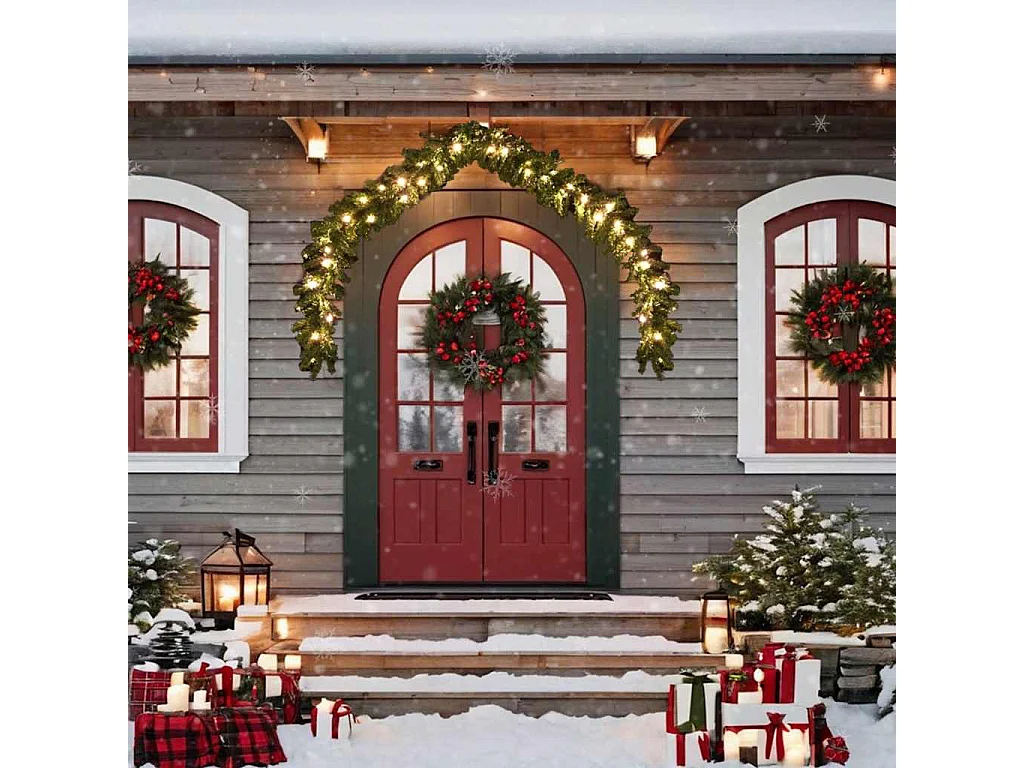 Ghirlanda natalizia con neve fioccata Verde 10 m PVC