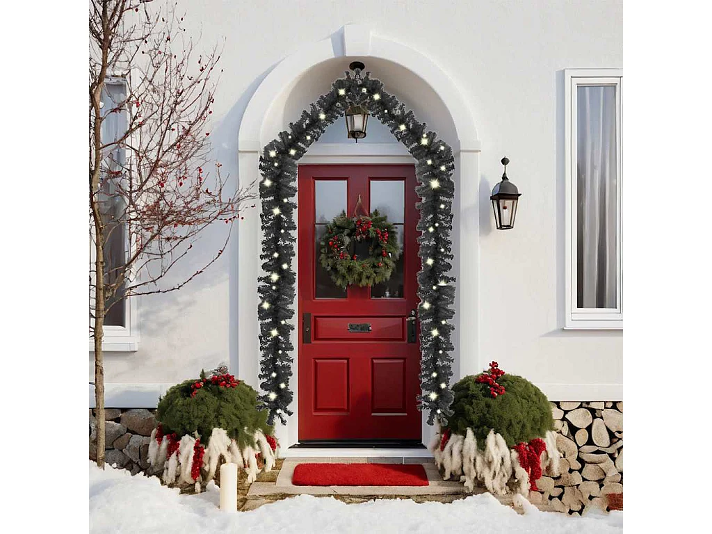 Ghirlanda natalizia con luci LED Nera 60 cm PVC