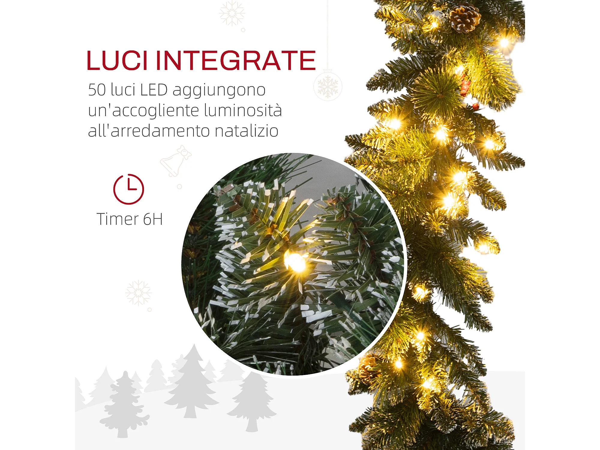 Ghirlanda natalizia Ø25x180 cm con 50 luci led, bacche e pigne