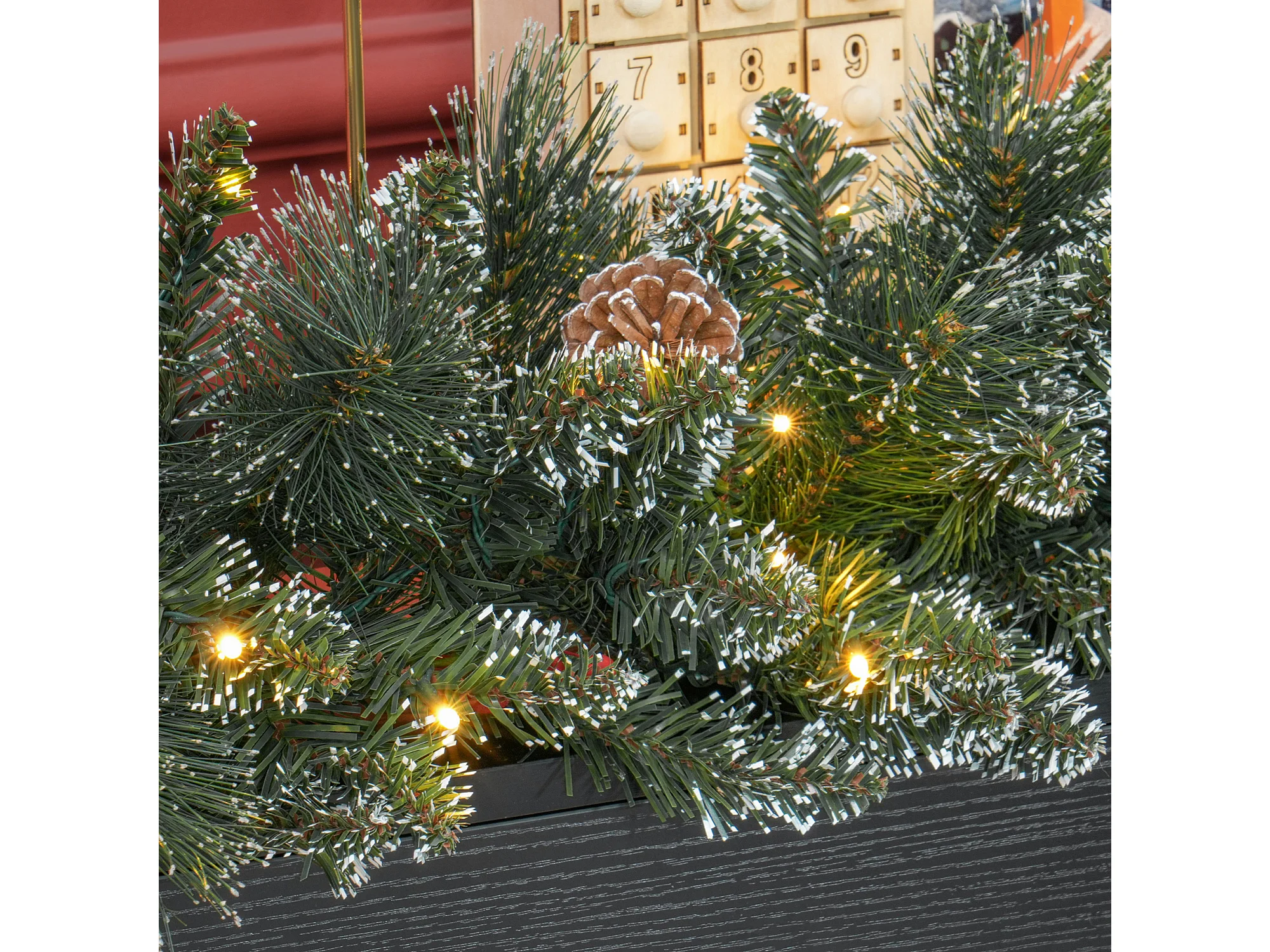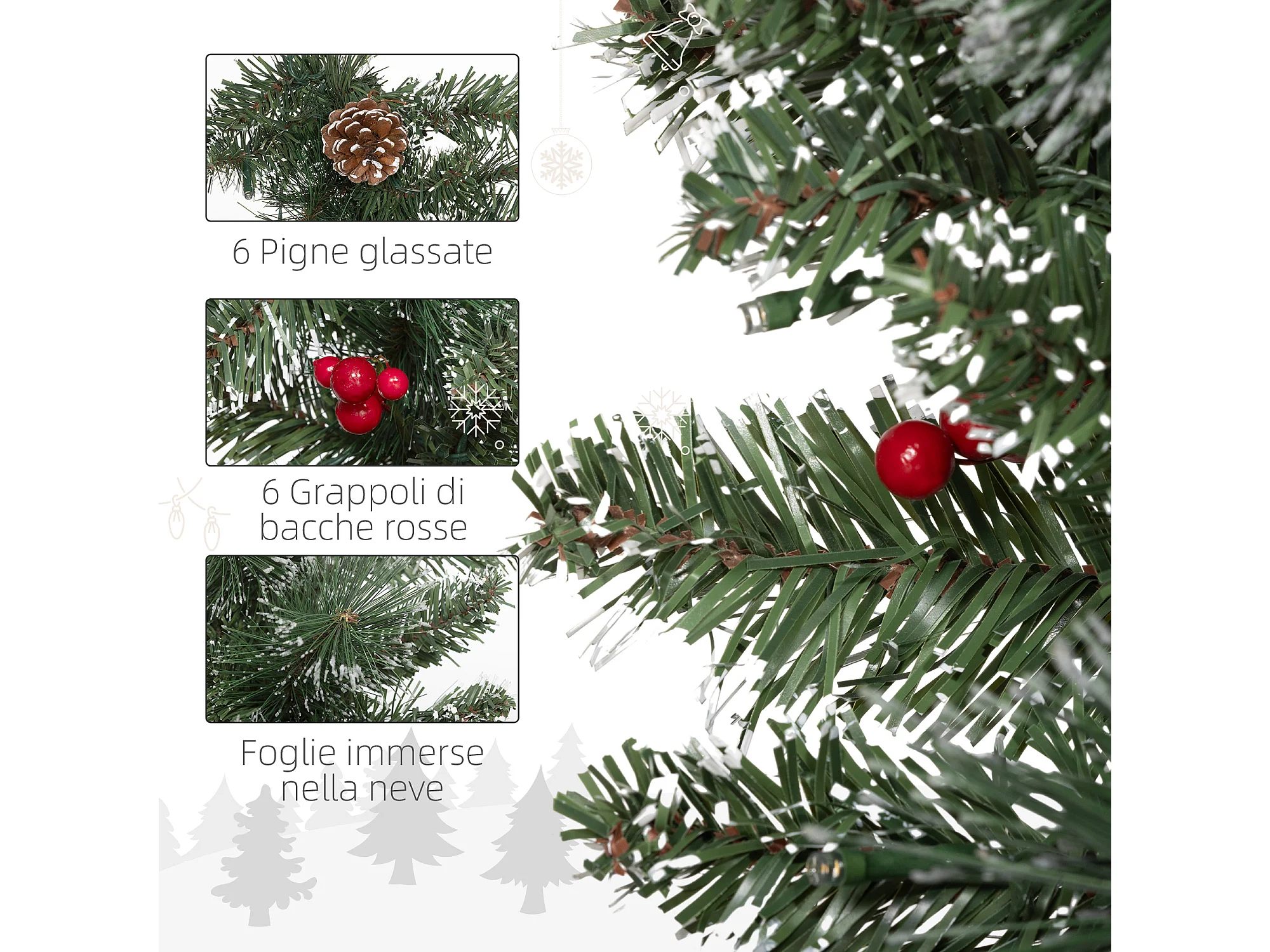 Ghirlanda natalizia da 180 cm innevata con luci pigne e bacche