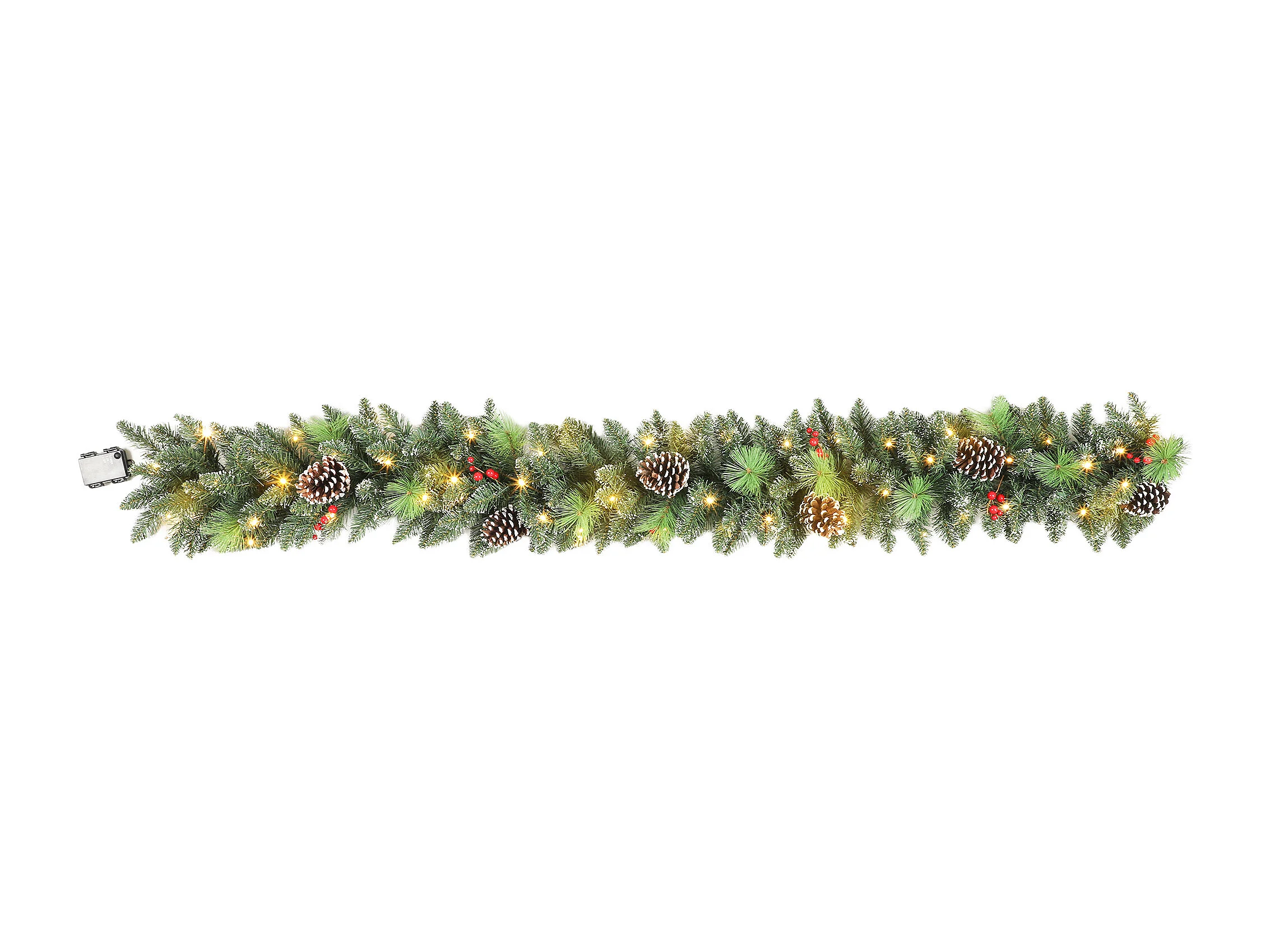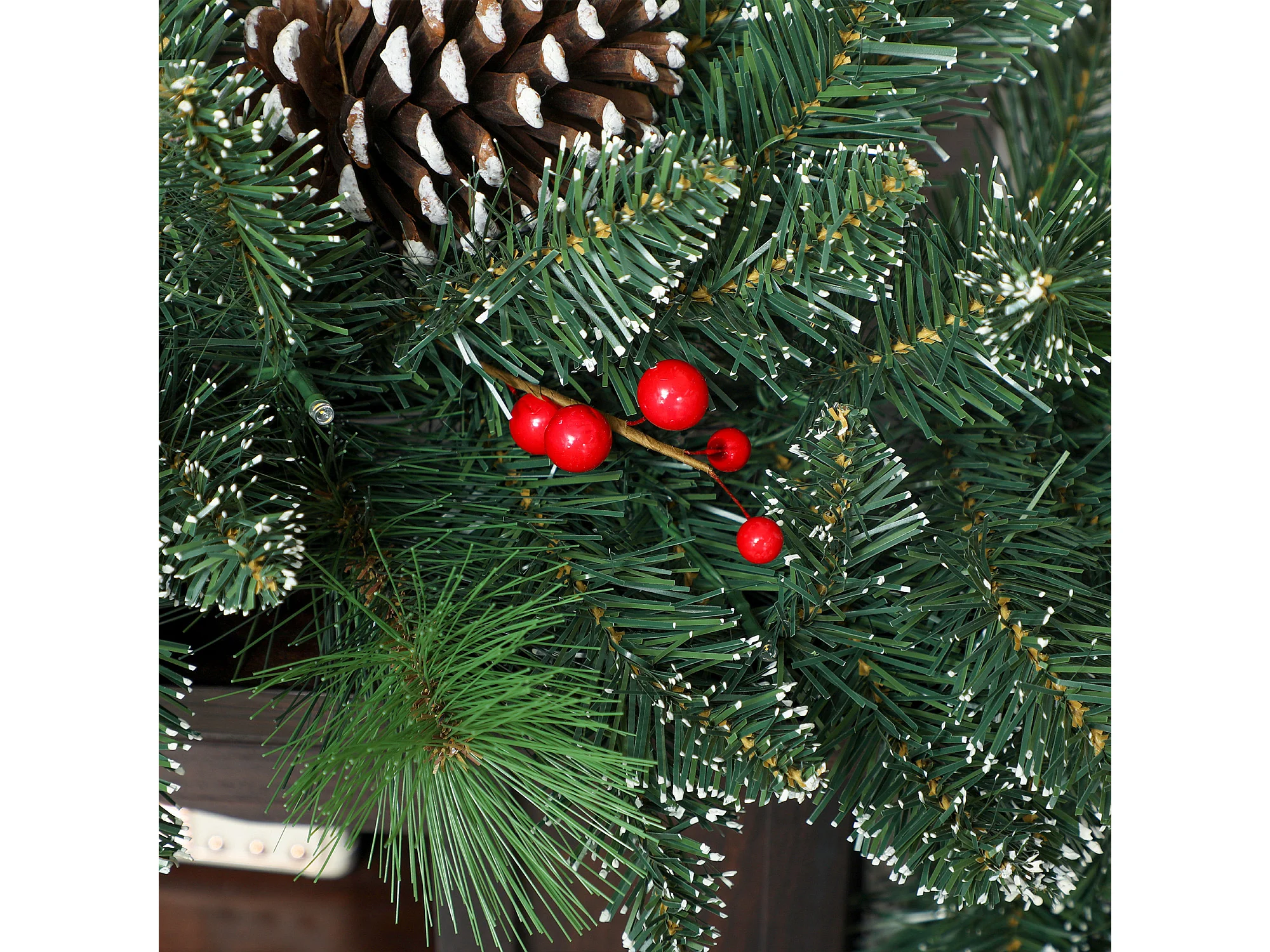 Ghirlanda natalizia da 180 cm innevata con luci pigne e bacche