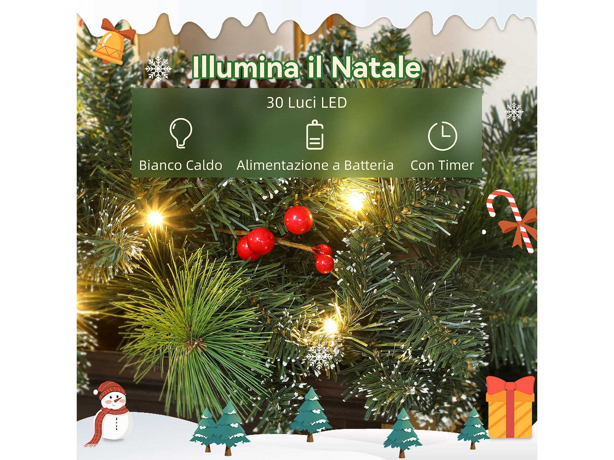 Ghirlanda natalizia da 1.80 m con 50 luci led bianche e decorazioni