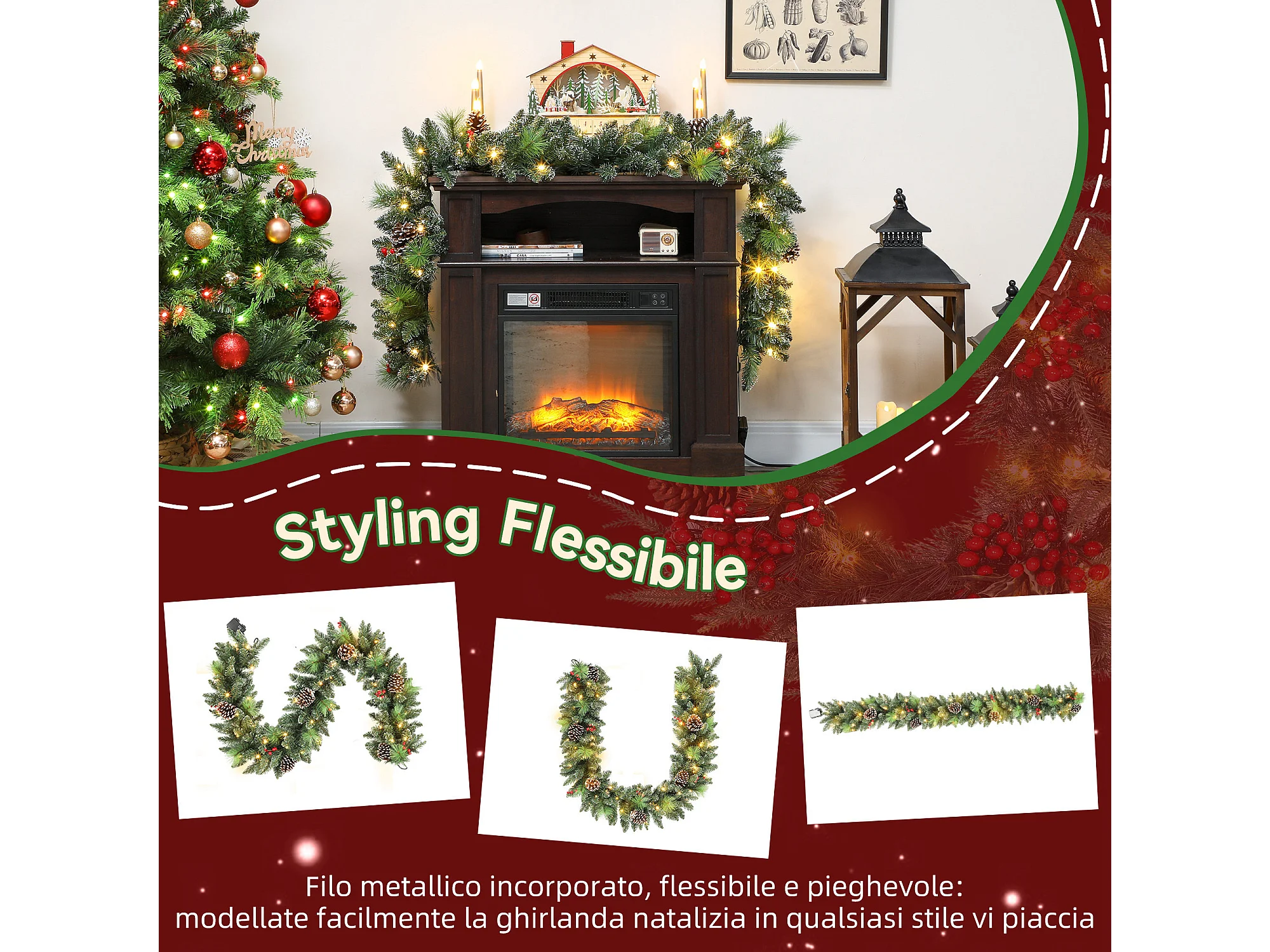 Ghirlanda natalizia Ø25x180 cm con 50 luci led, bacche e pigne