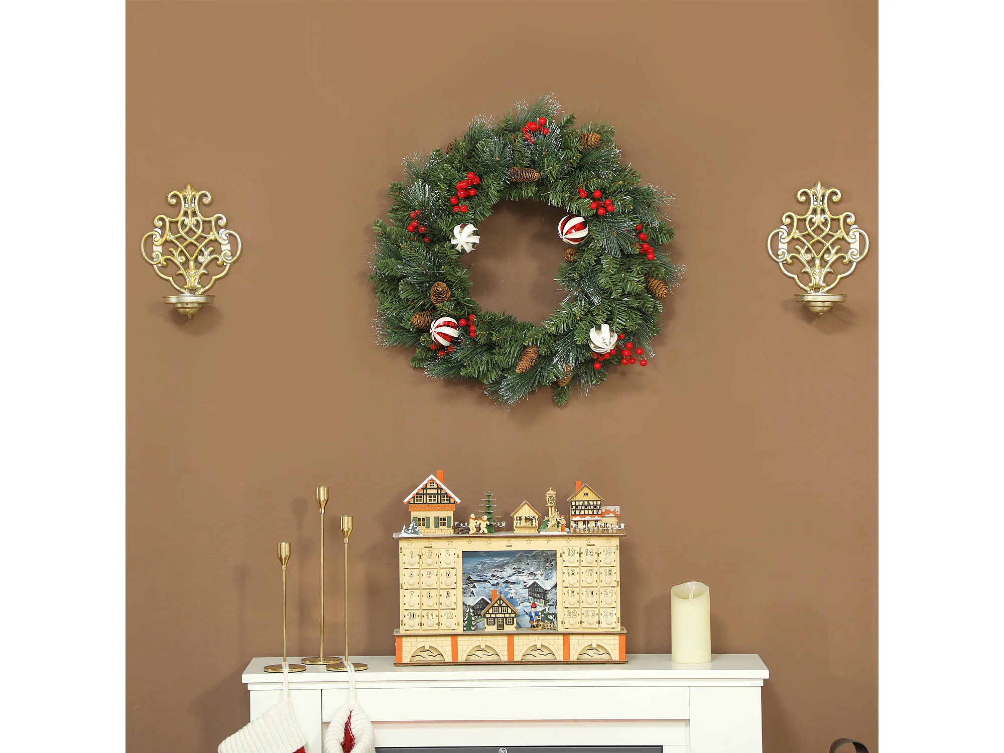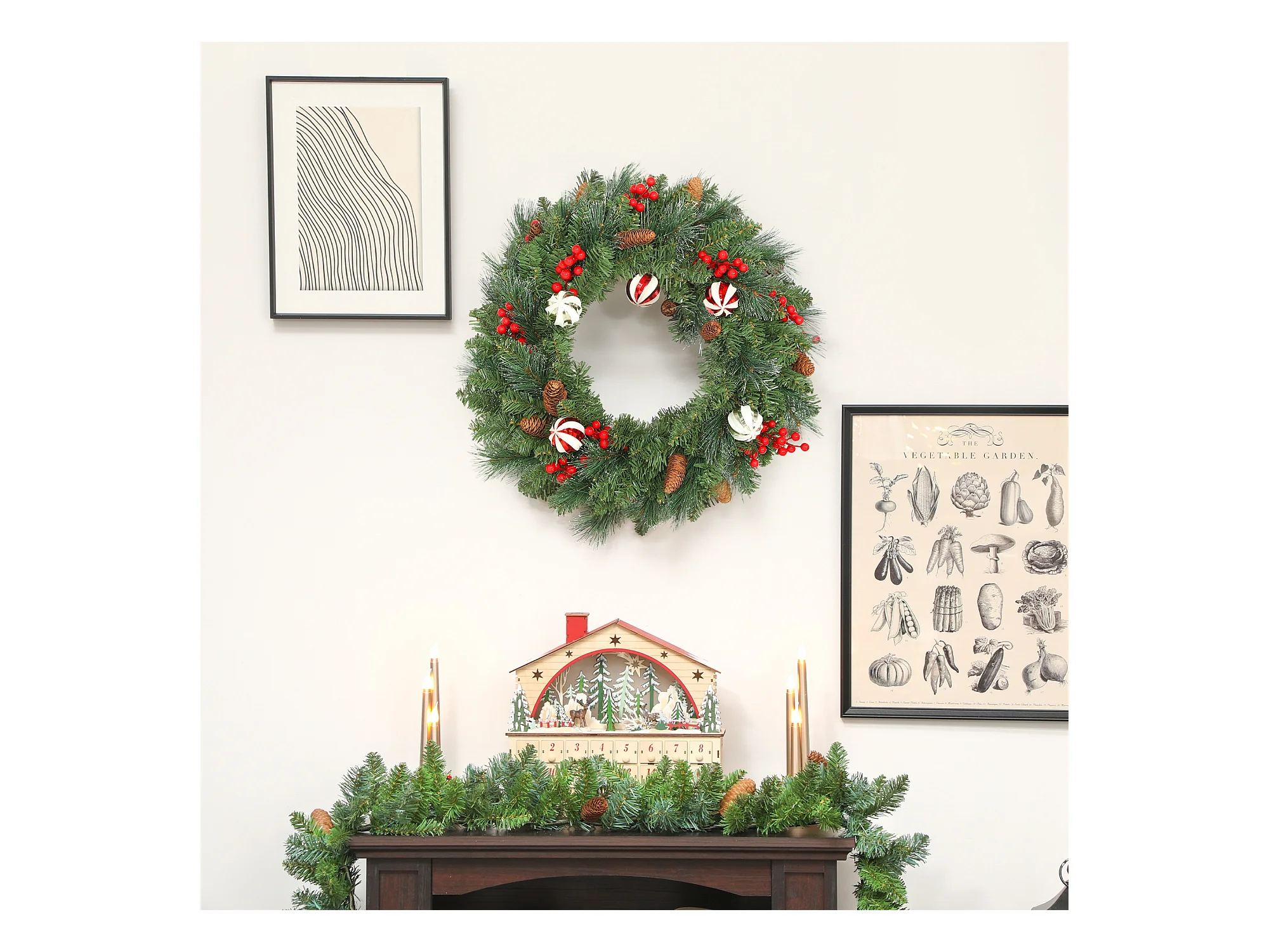 Ghirlanda natalizia da 60 cm con luci led pigne e bacche rosse