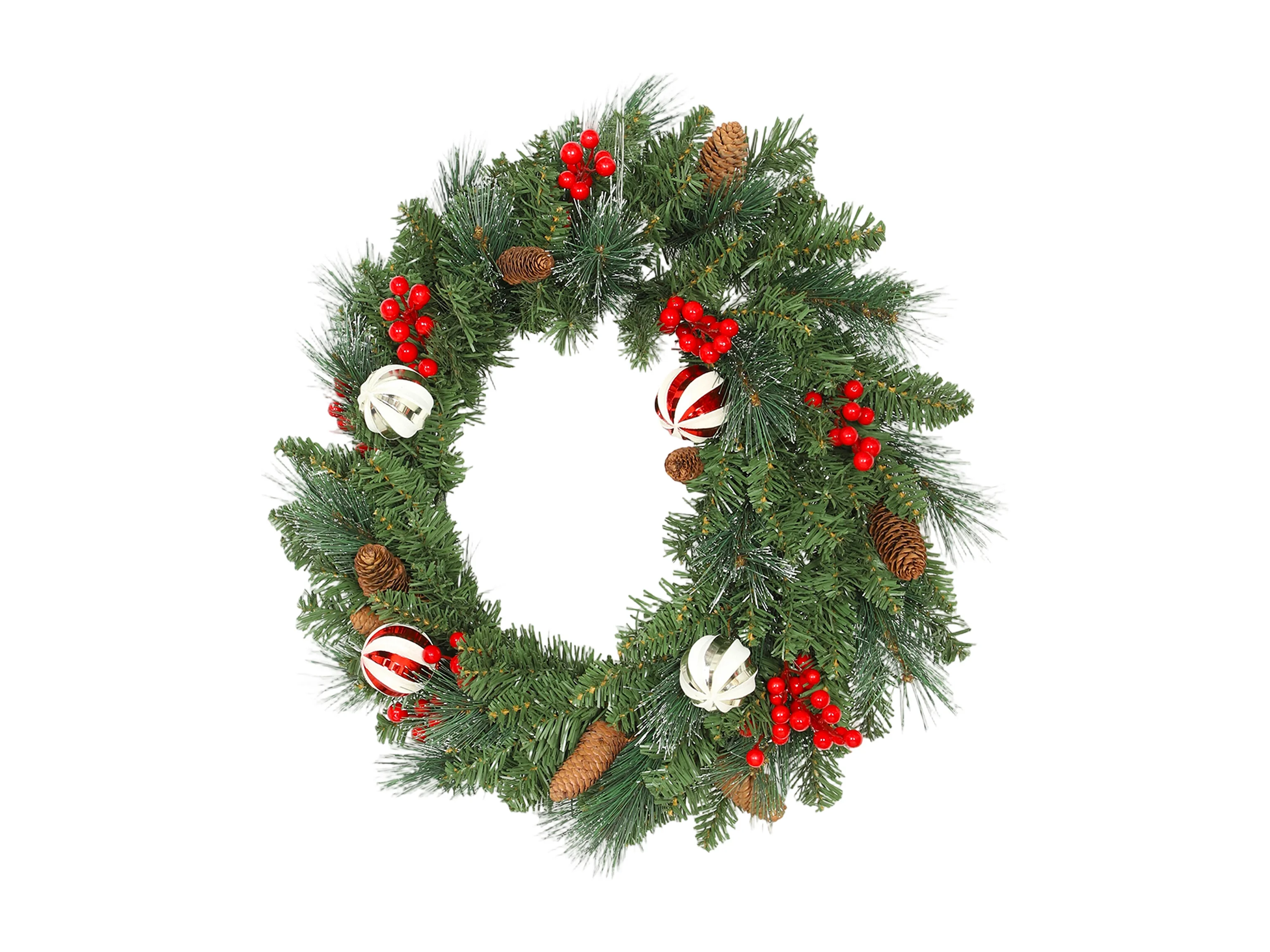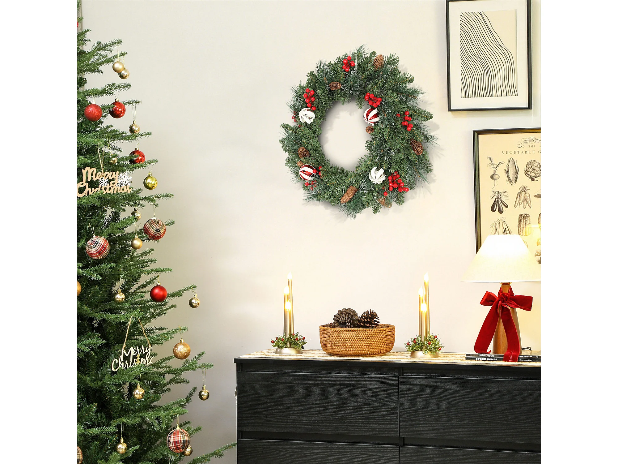 Ghirlanda natalizia da 60 cm innevata con pigne bacche e palline