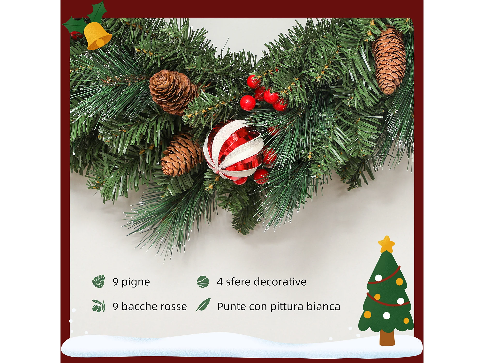 Ghirlanda natalizia Ø25x180 cm con 50 luci led, bacche e pigne