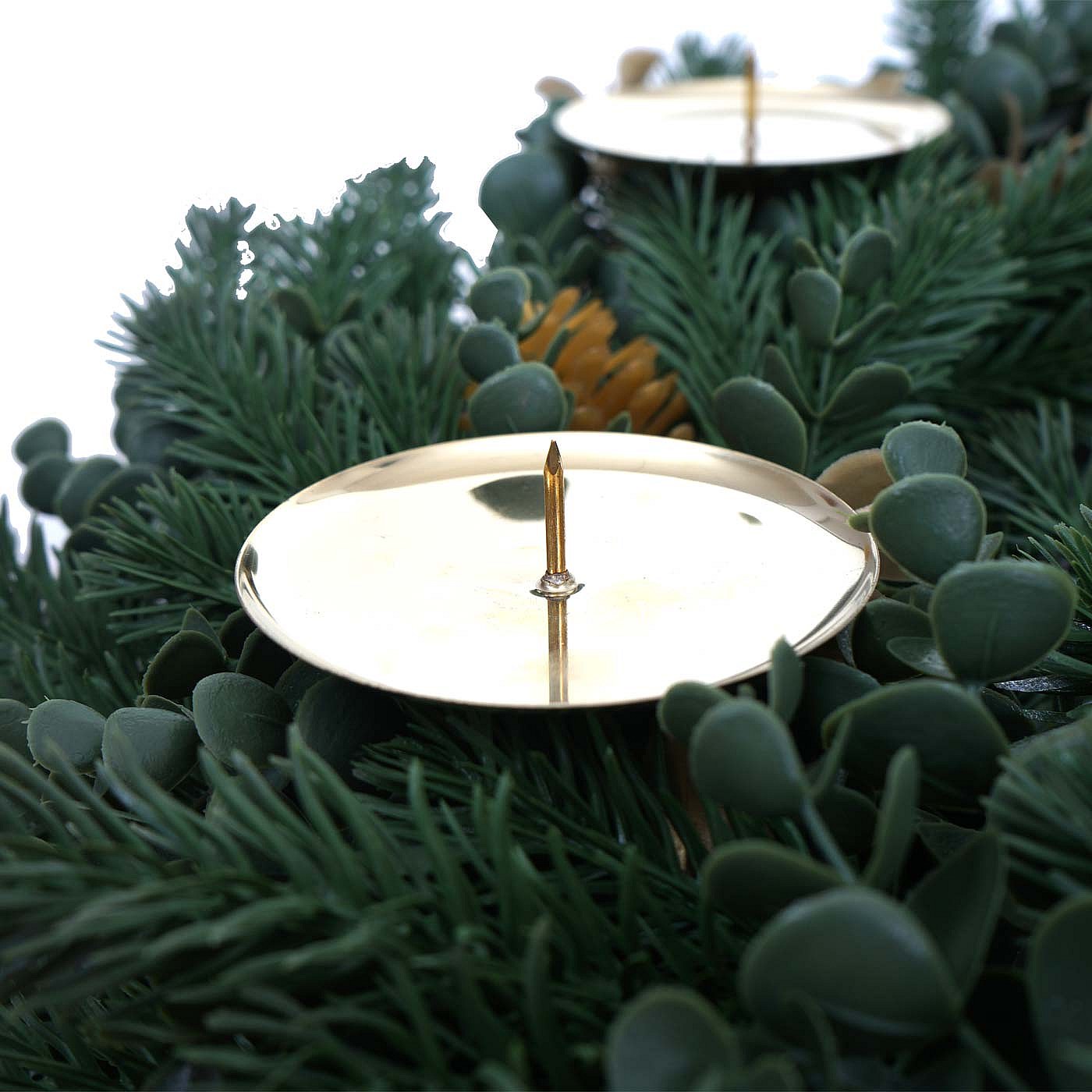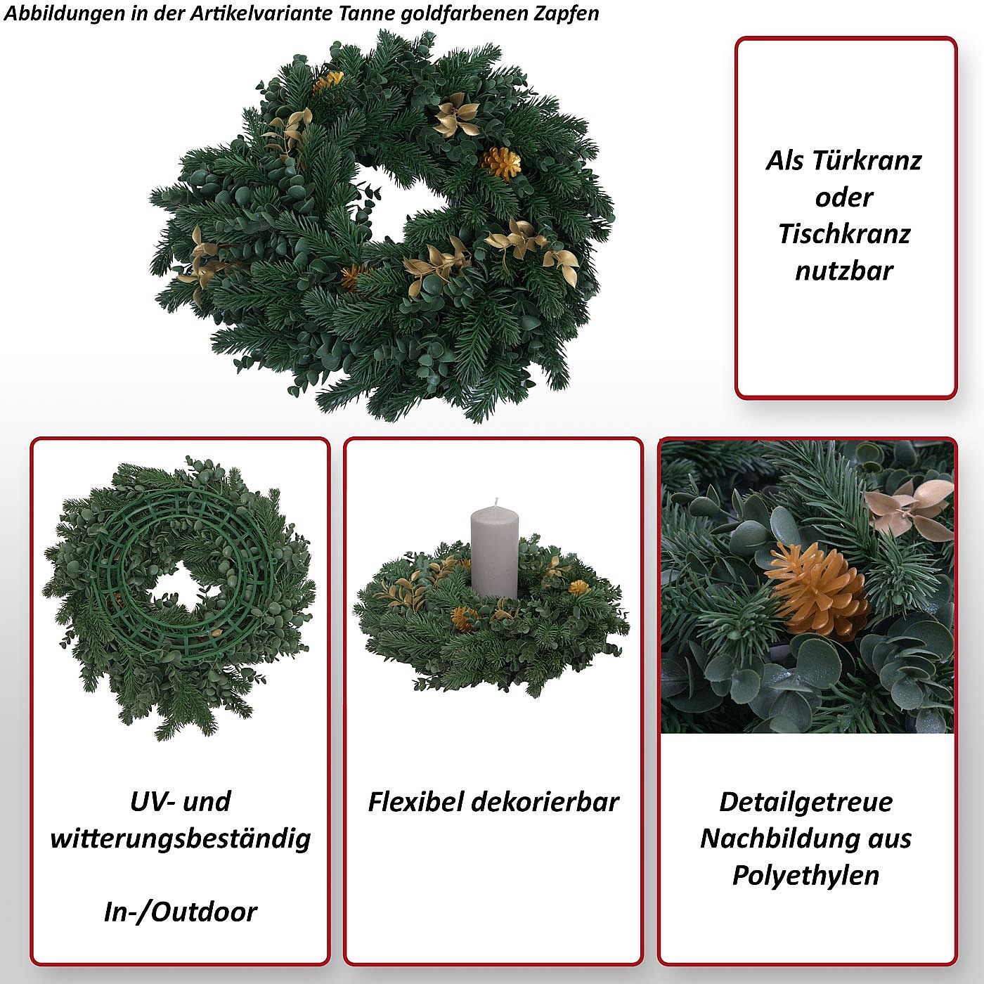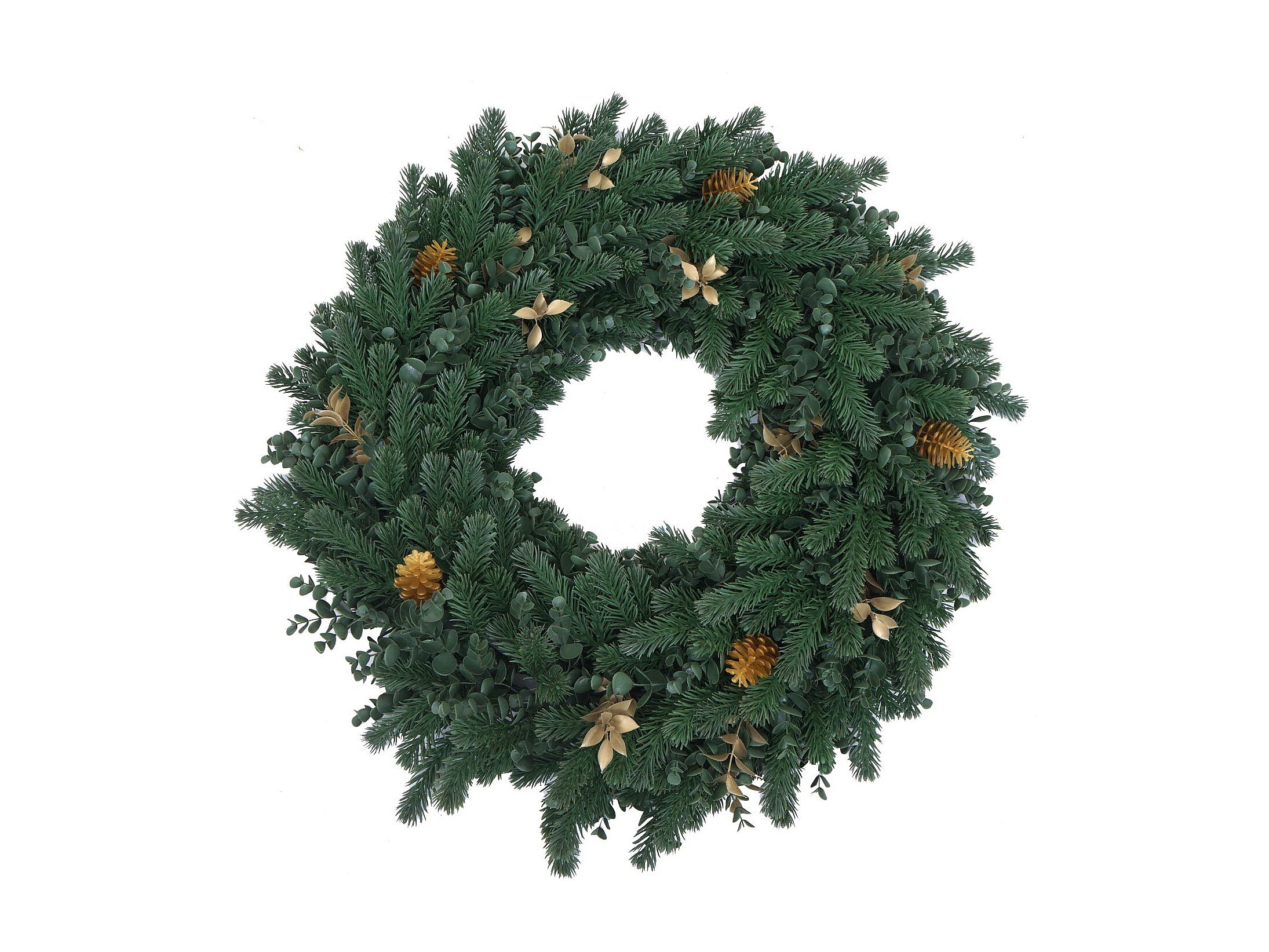 Ghirlanda natalizia MCW-O98, per porta, da tavolo, decorazione artificiale Ø 60 cm ~ abete con pigne dorate