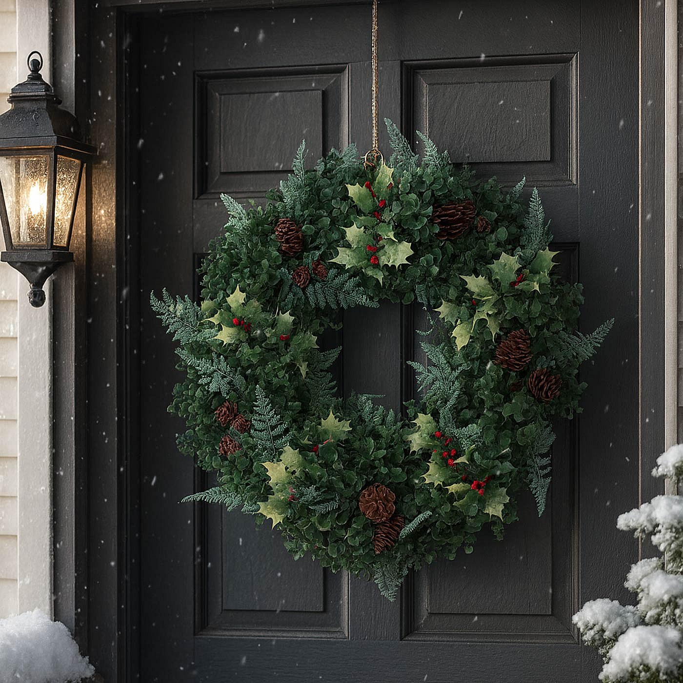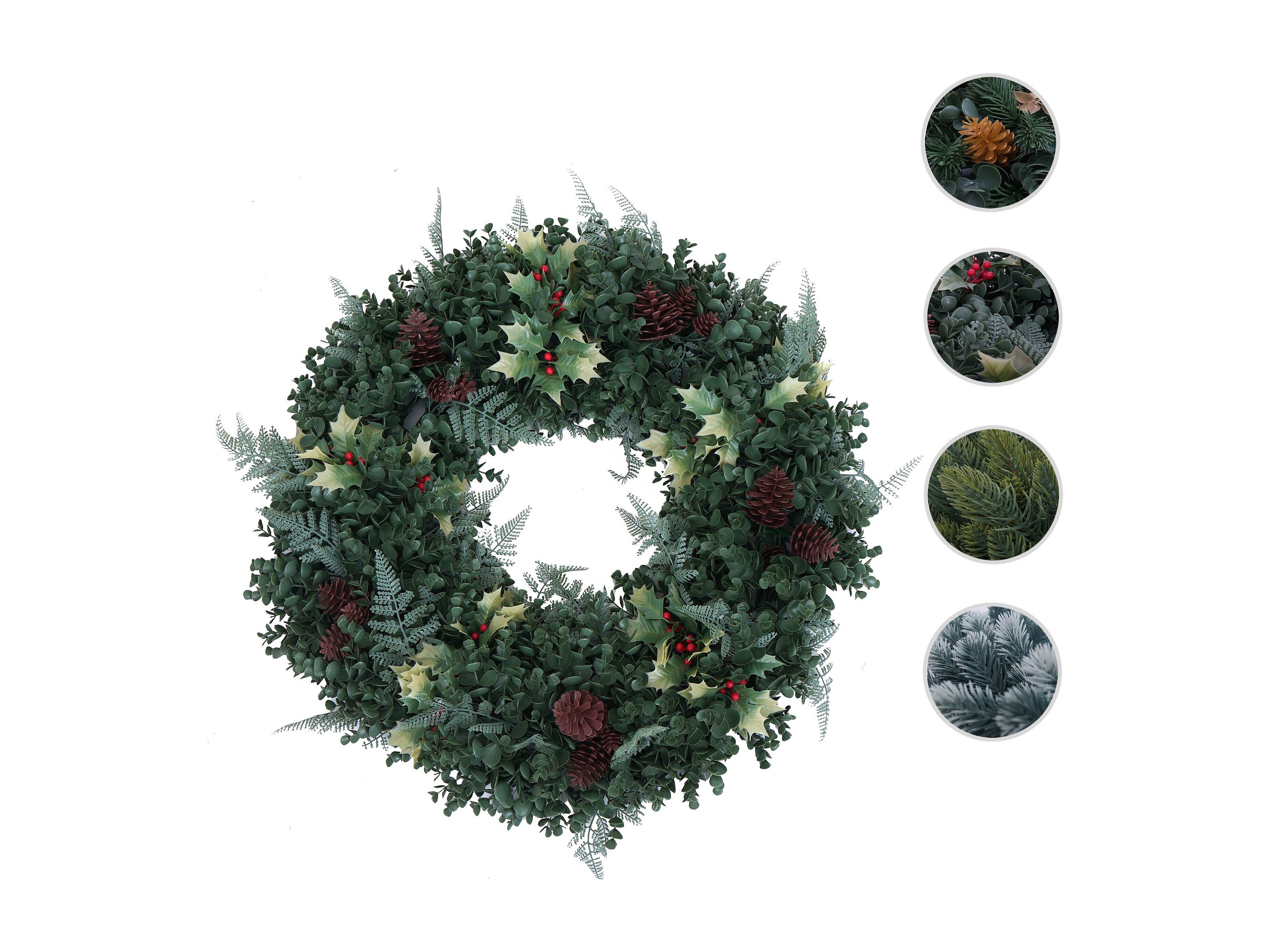 Ghirlanda natalizia MCW-O98, per porta, da tavolo, decorazione artificiale Ø 60 cm ~ verde con bacche rosse