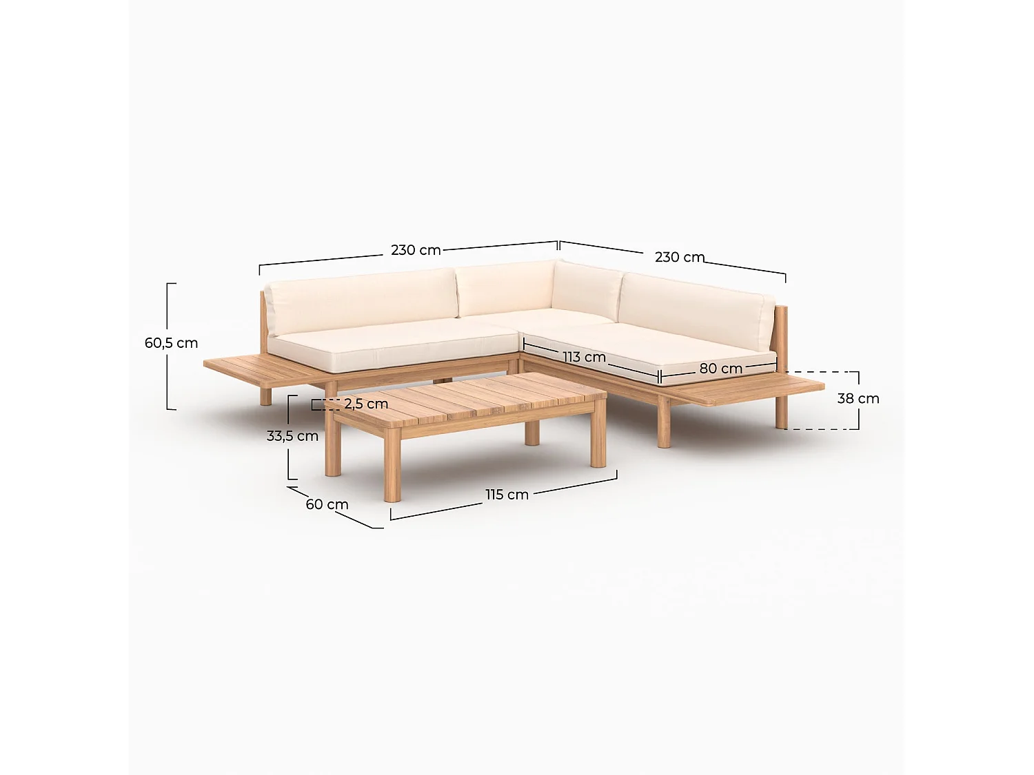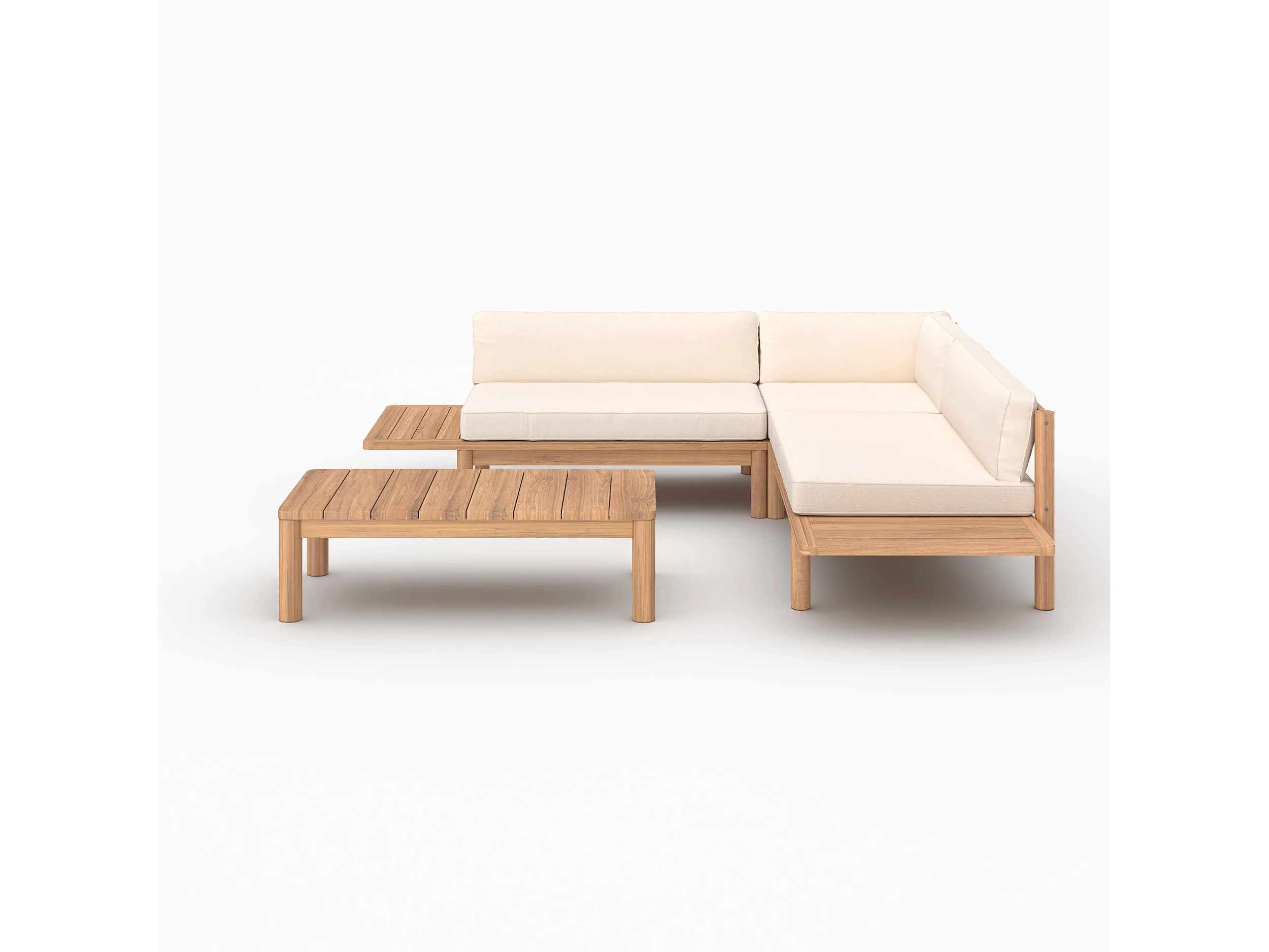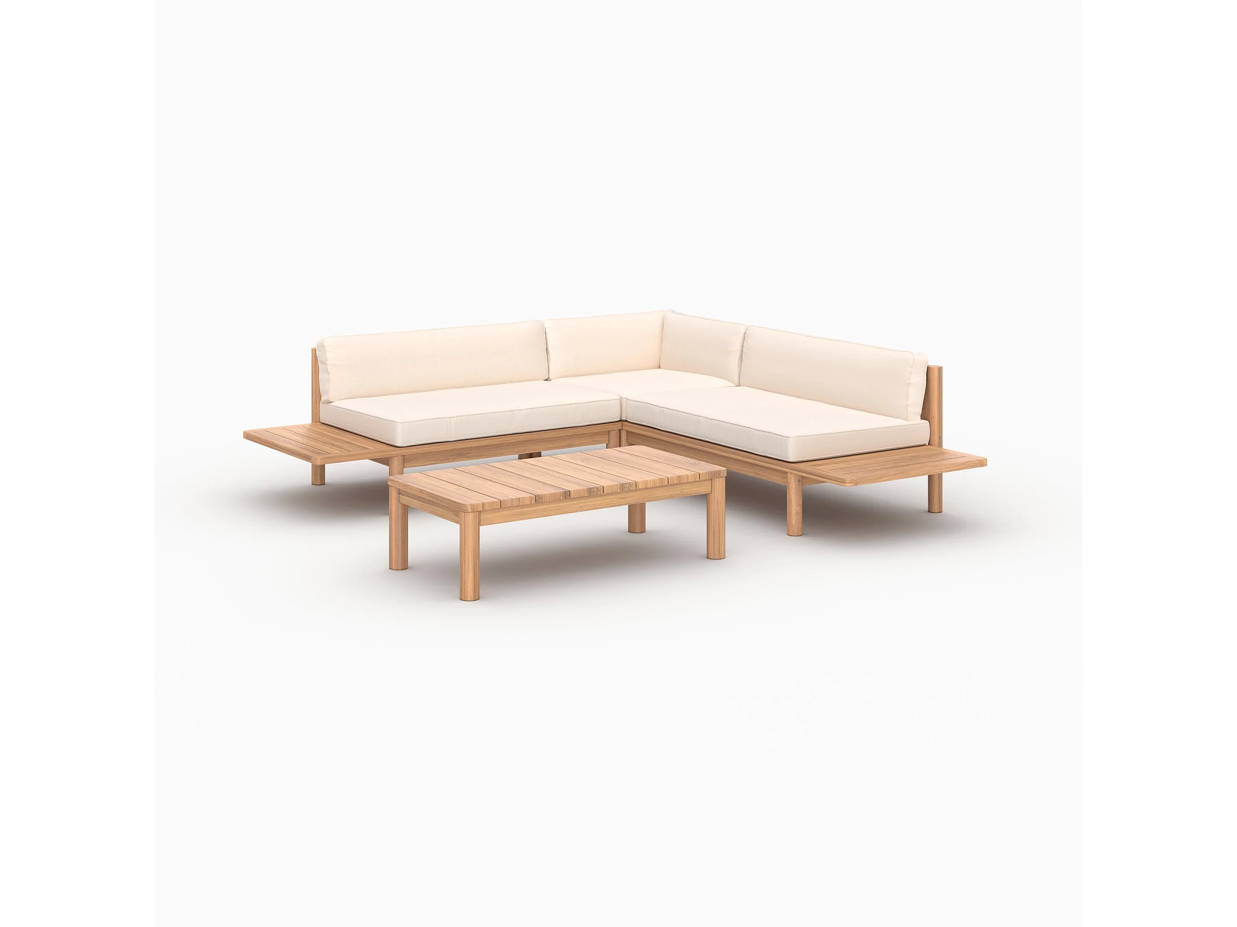 Giardino per 4 persone in teak massiccio e tessuto bianco - Nadila