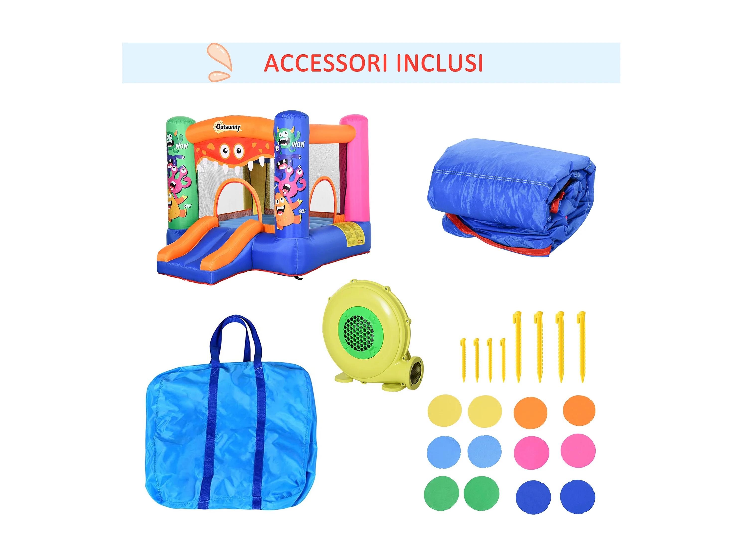 Gioco gonfiabile gigante per bambini con scivolo e canestro