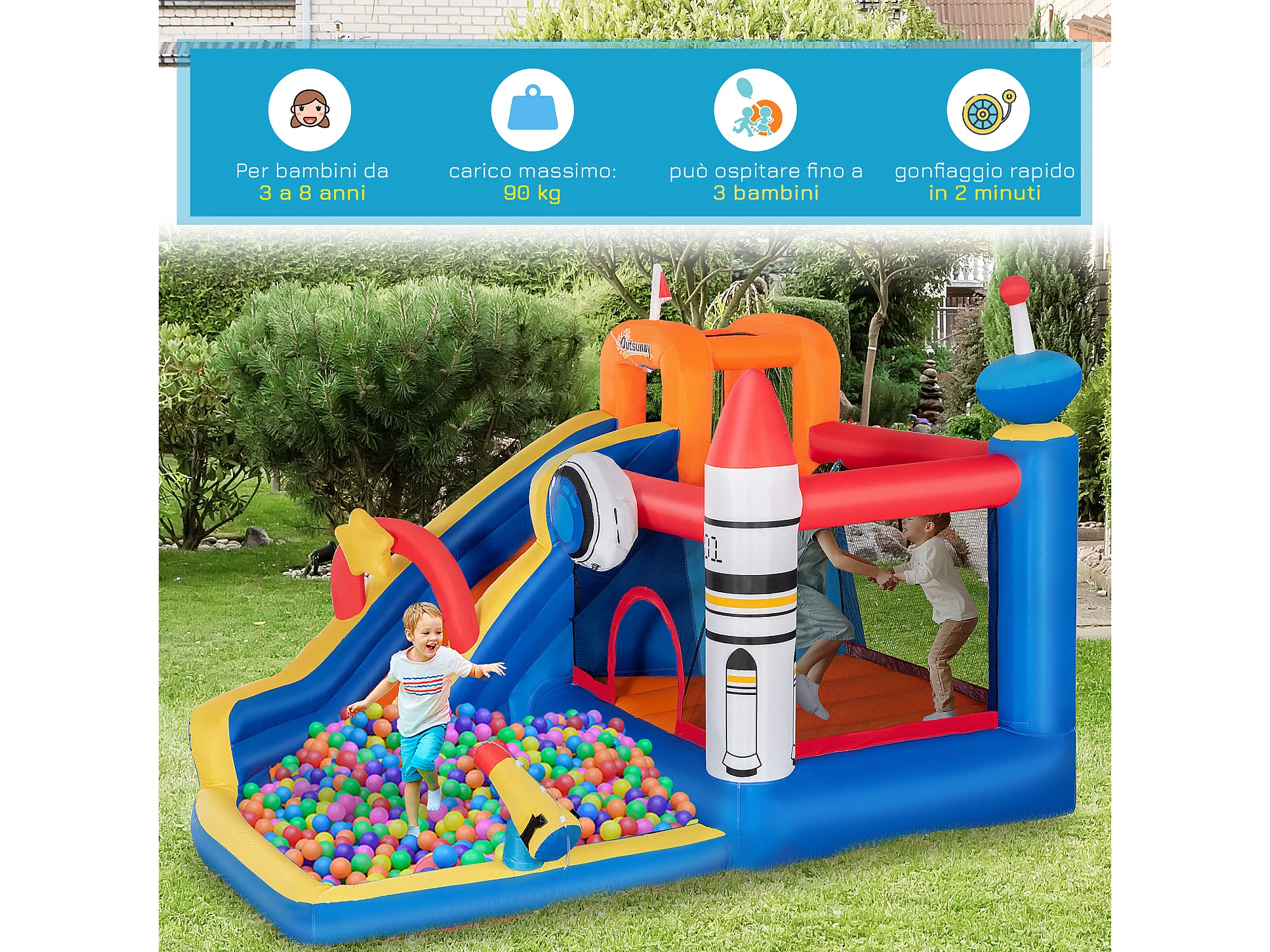 Castello gonfiabile per bambini dai 3 ai 10 anni - con soffiatore - carico massimo 135 kg - 364x315x239cm