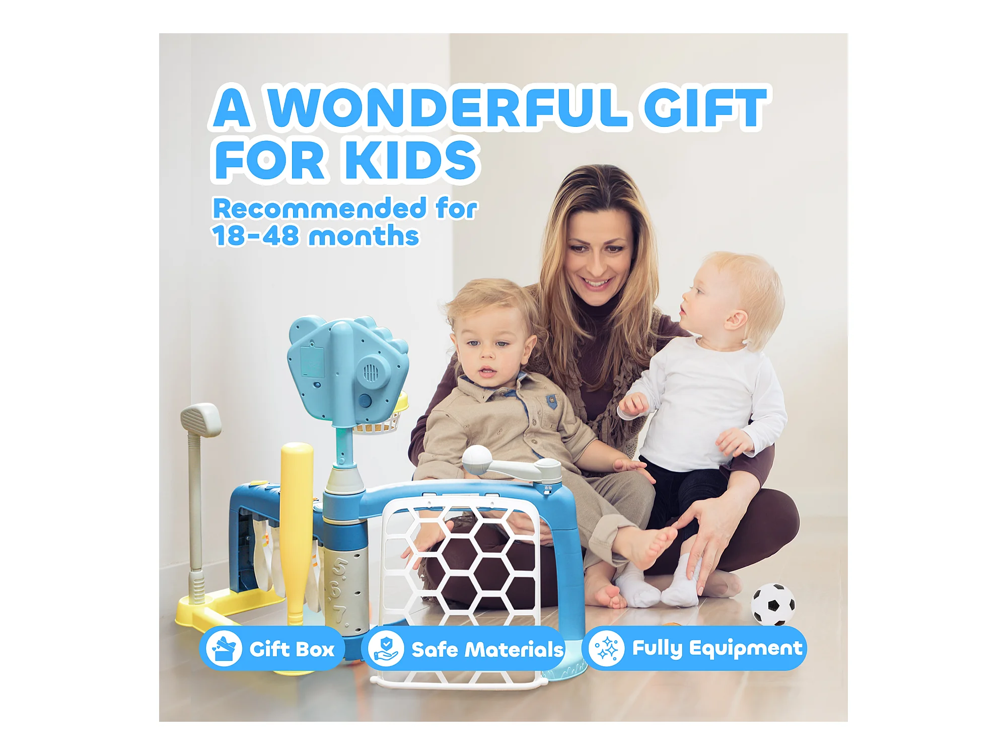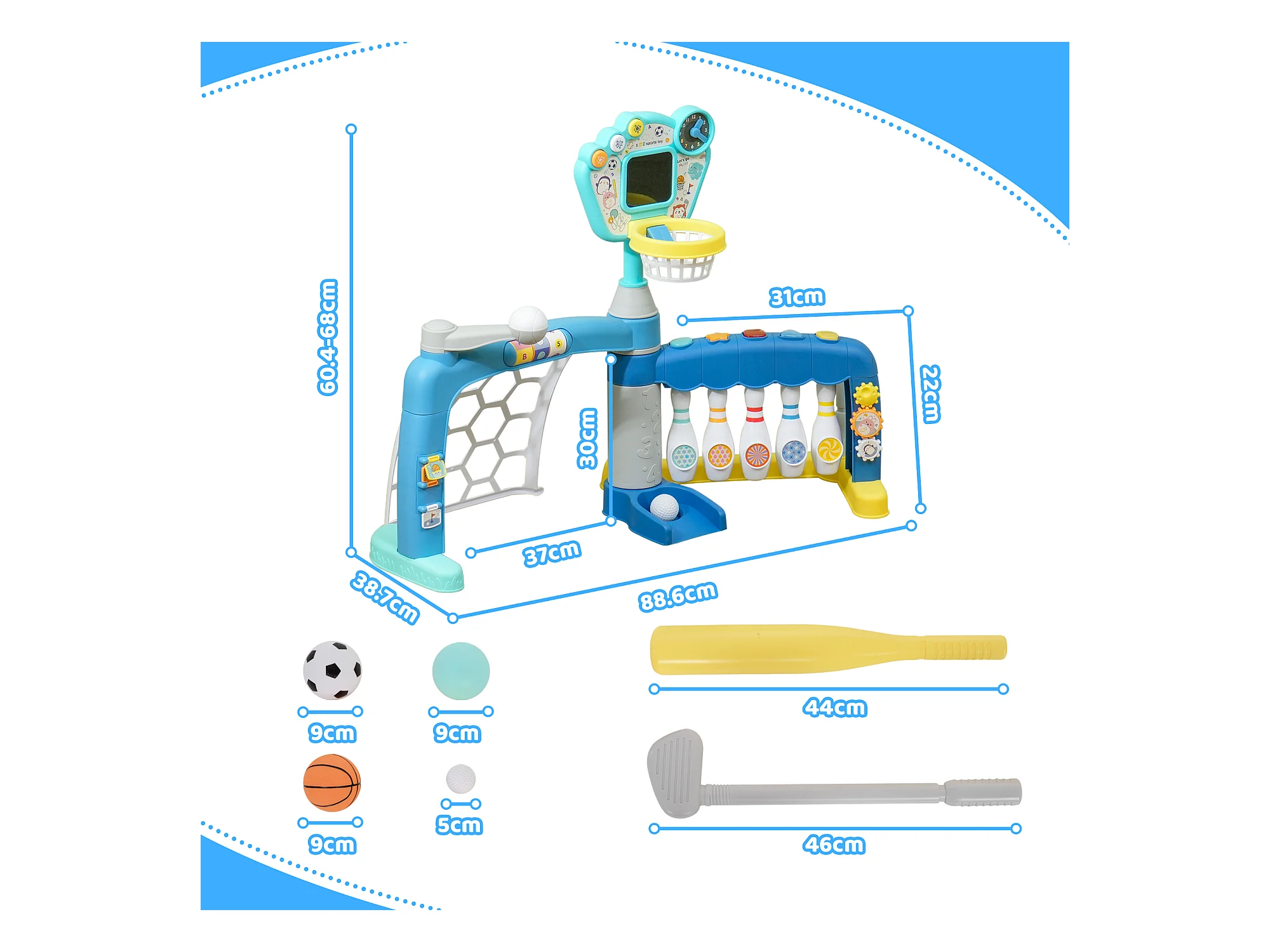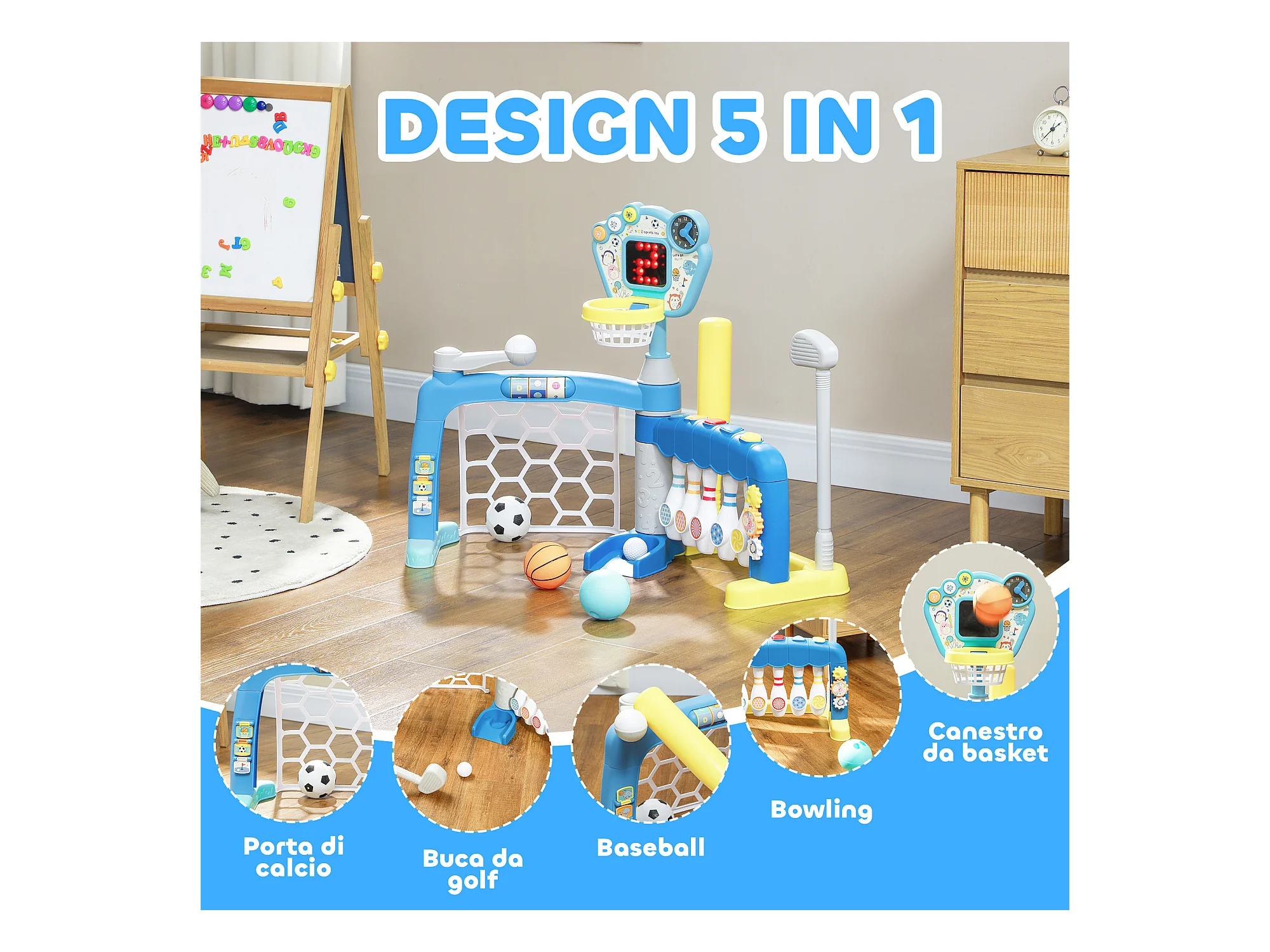 Gioco per bambini 5 in 1 per calcio, basket, golf, baseball e bowling