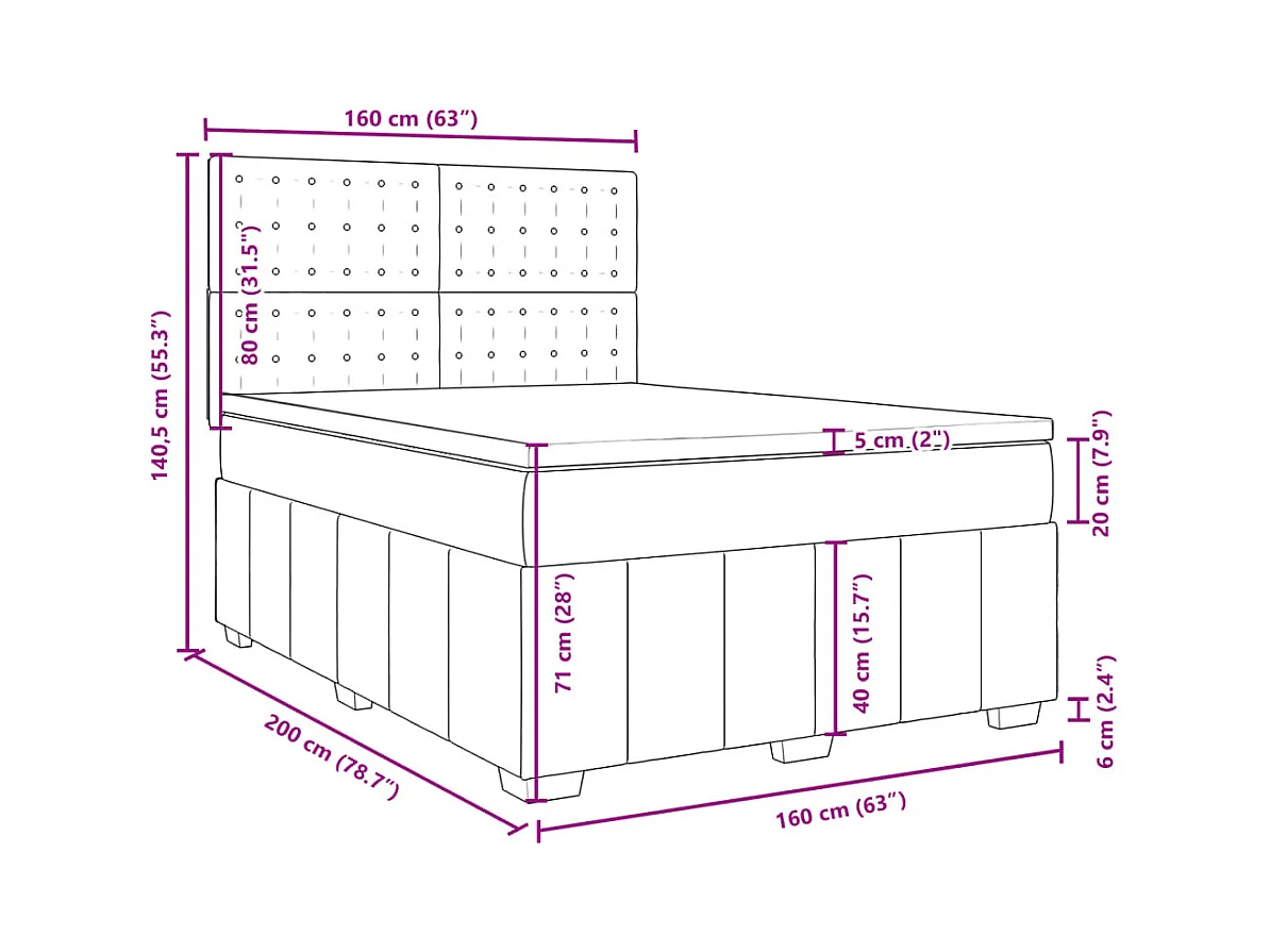 Giroletto a Molle con Materasso Blu 160x200 cm in Velluto