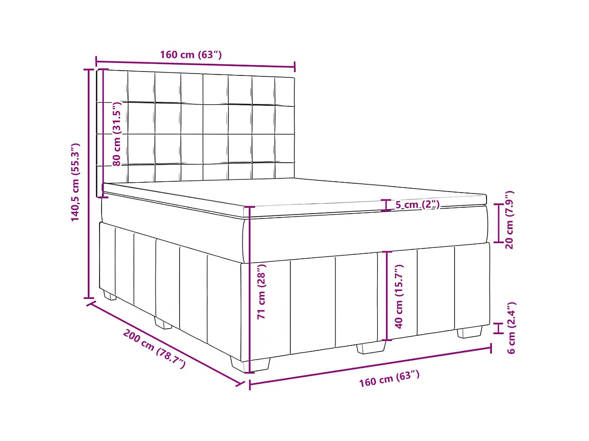 Giroletto a Molle con Materasso Blu 160x200 cm in Velluto