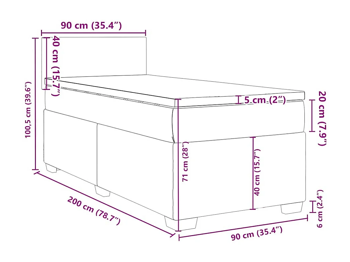 Giroletto a Molle con Materasso Blu Scuro 90x200 cm in Velluto