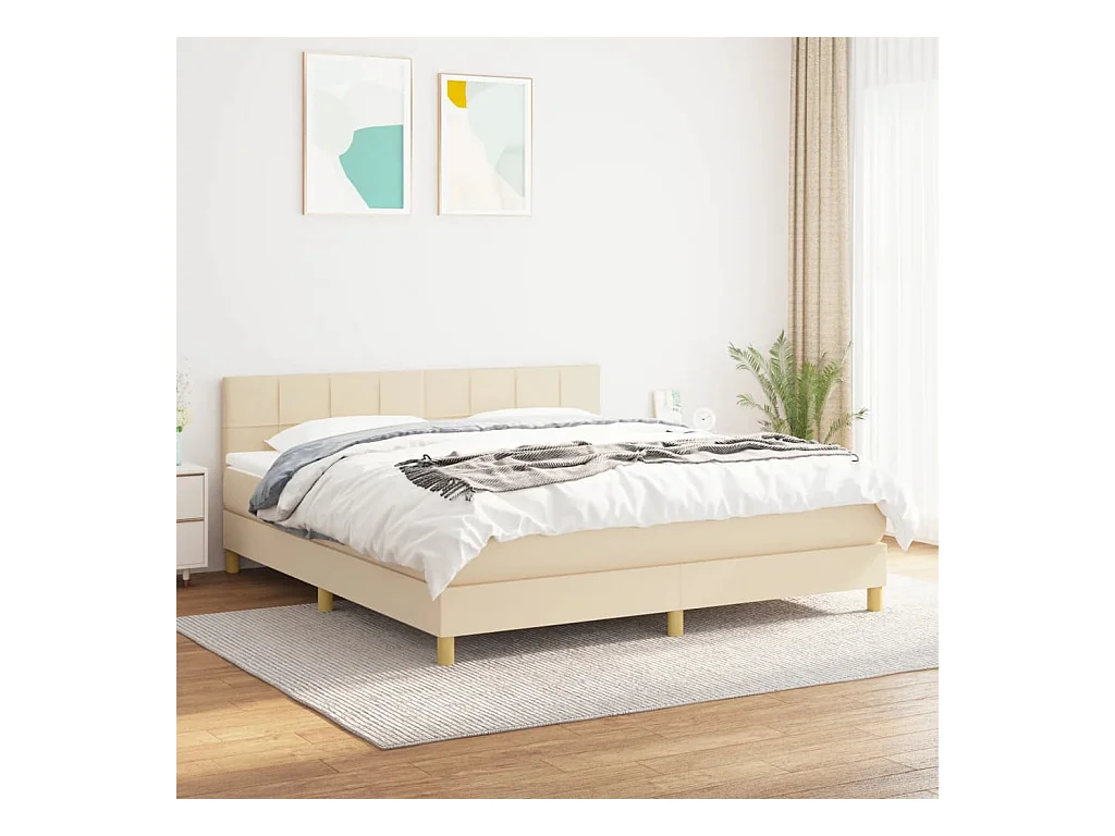 Giroletto a Molle con Materasso Crema 180x200 cm in Tessuto