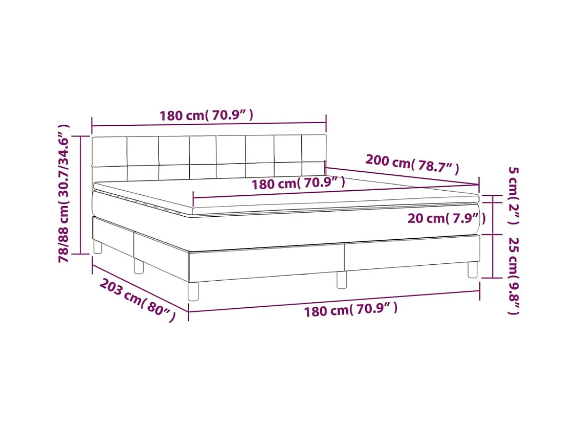 Letto 180x200 cm con cassetti, letto in similpelle PU senza testiera, con illuminazione a LED, metallo (200x180x32 cm)